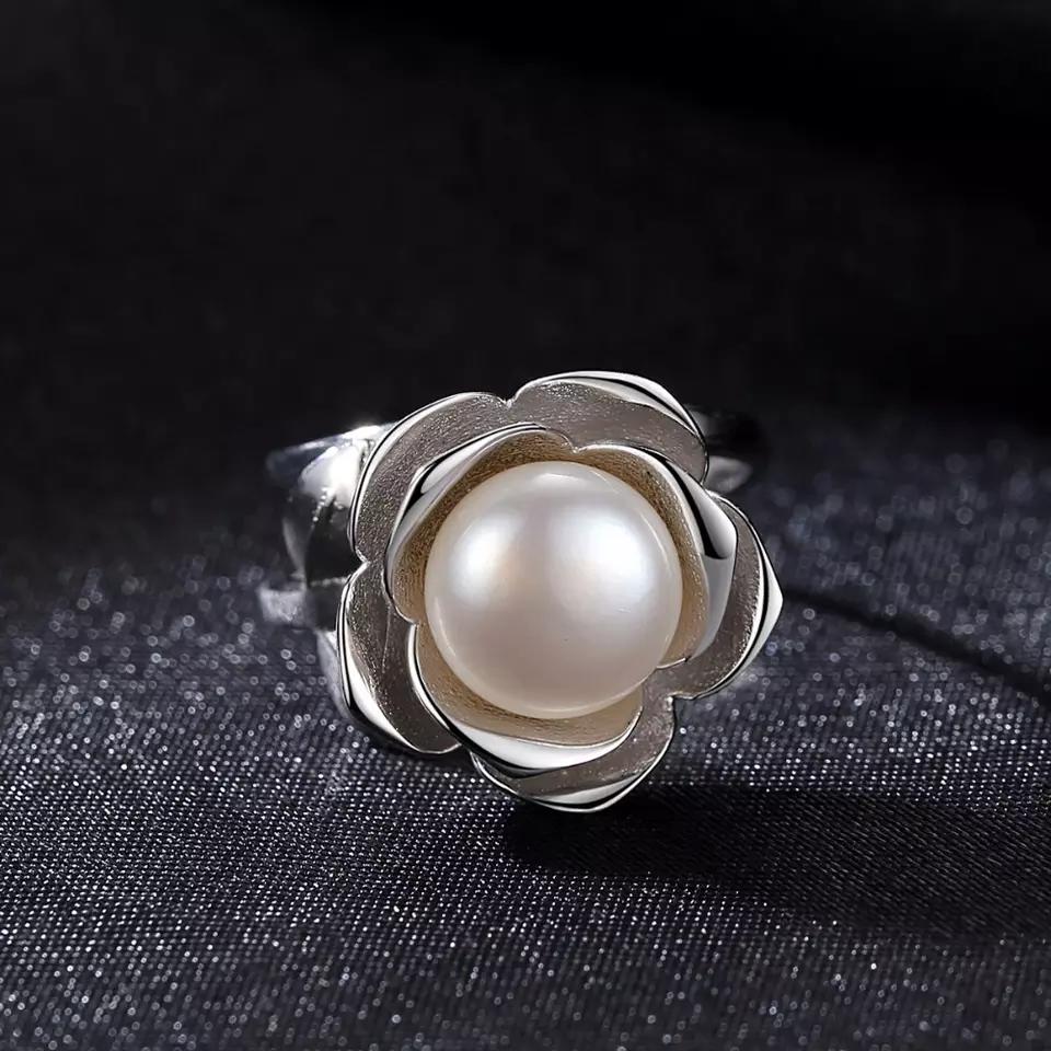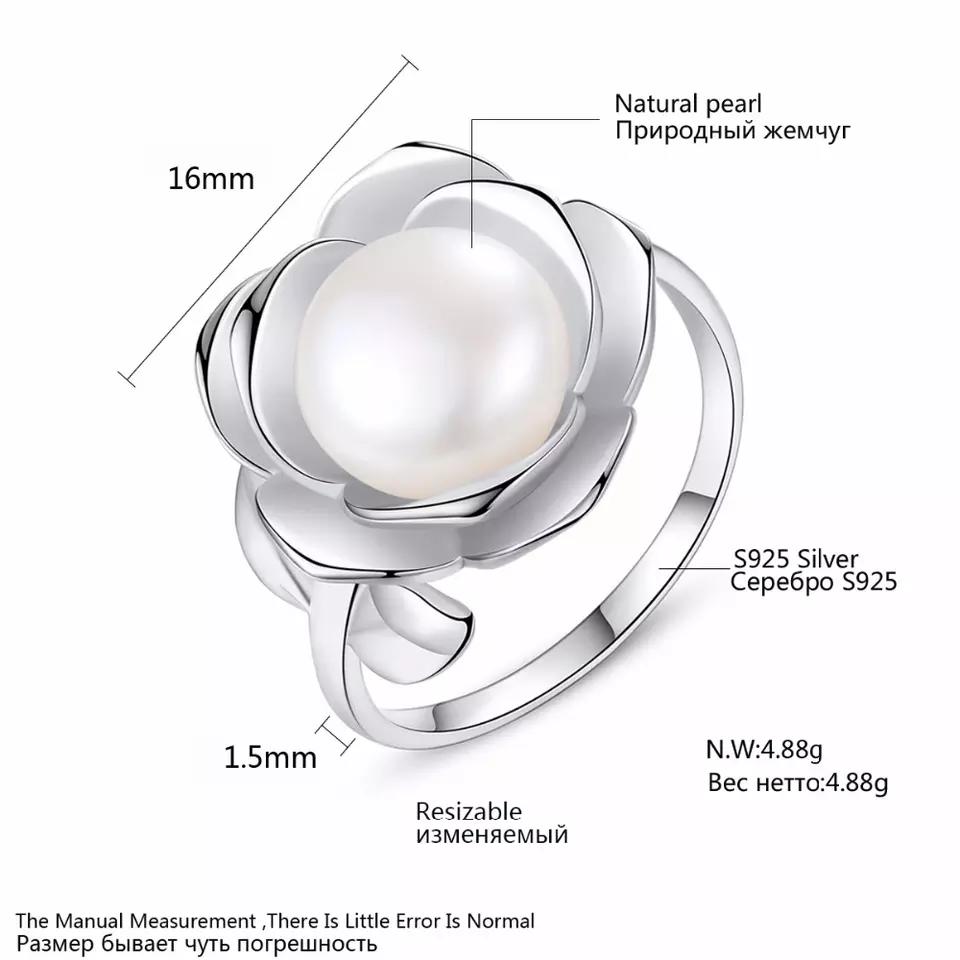 Aetolia 925 Sterling Silver Natural Freshwater Pearl Rings Flower Petals Adjustable Open Ring FR0014