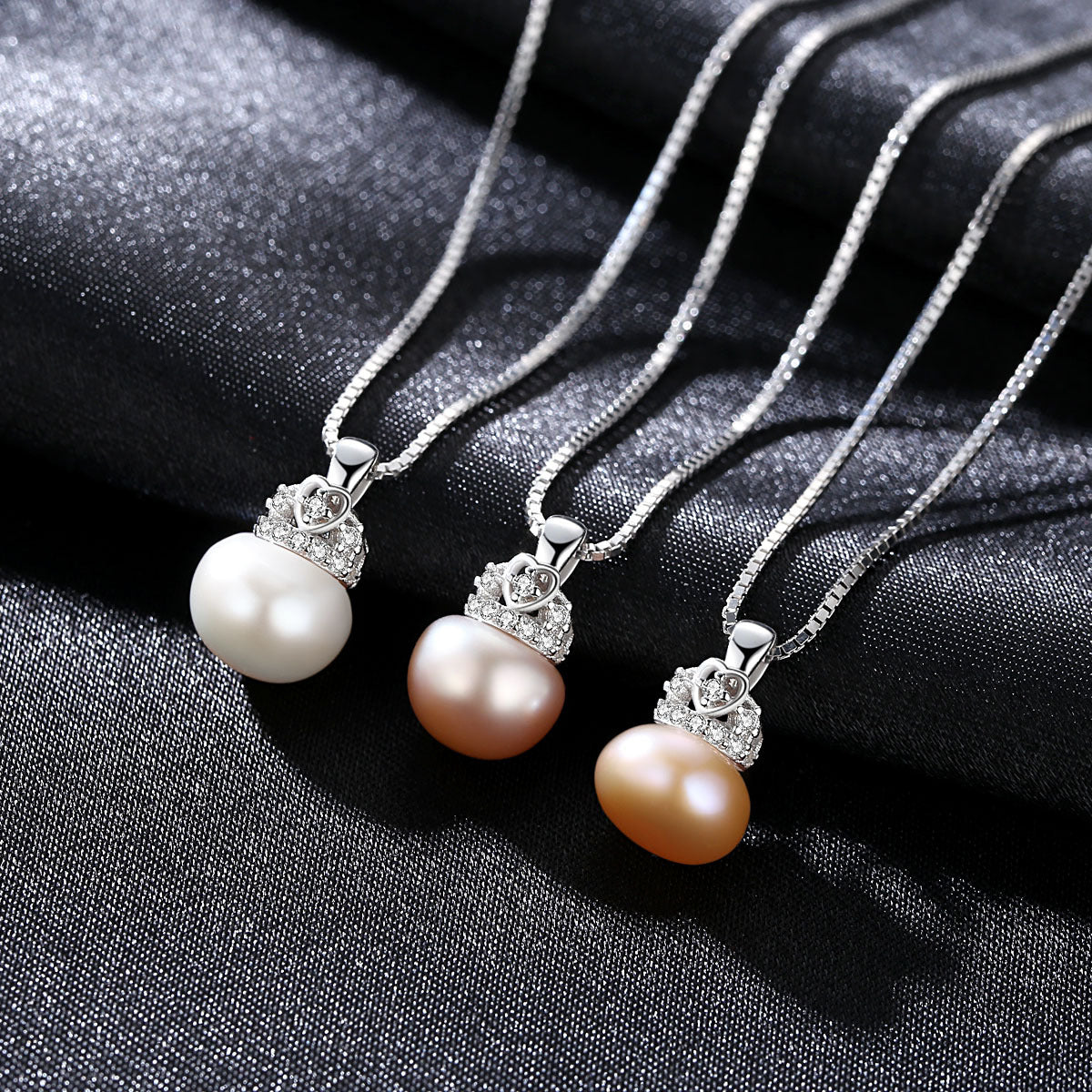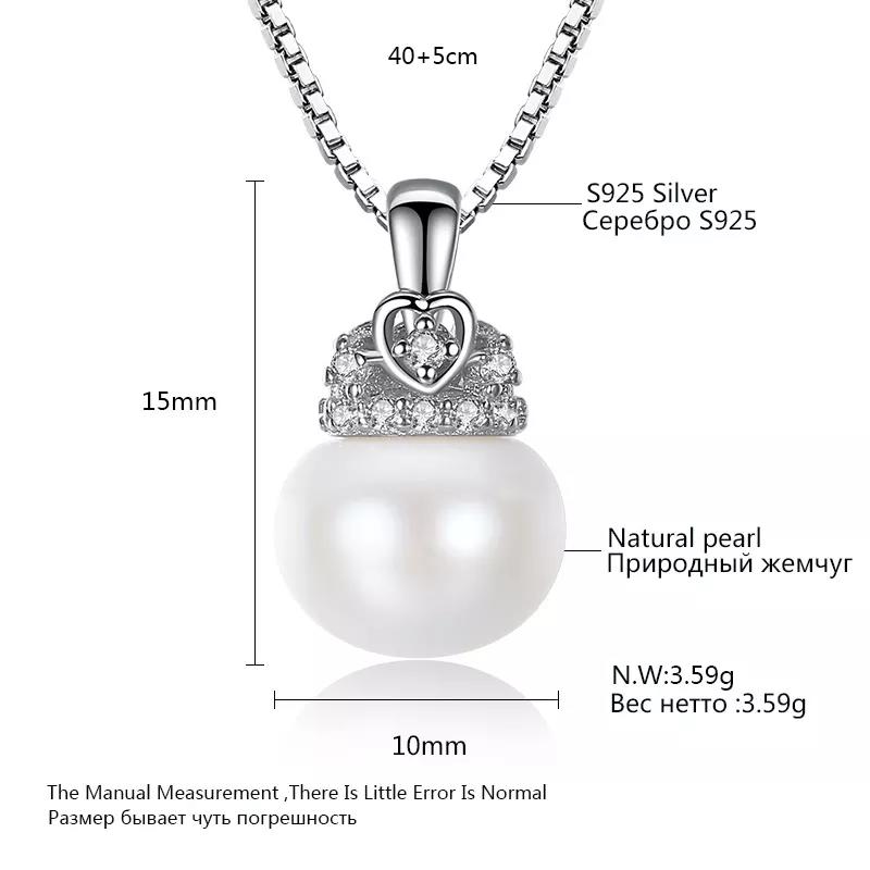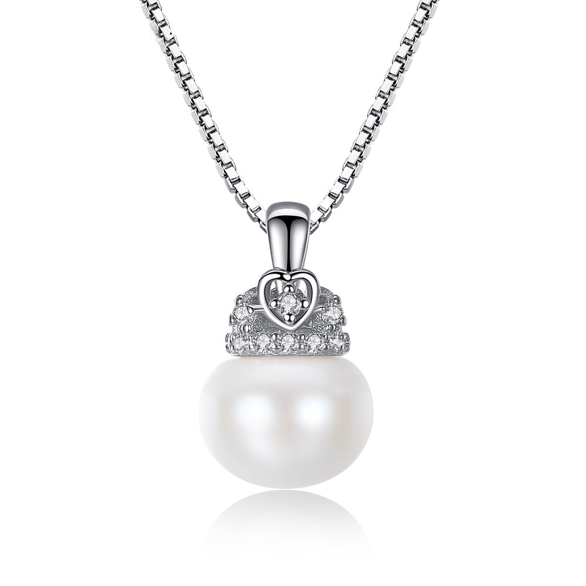 Aetolia 925 Sterling Silver Natural Freshwater Pearl Necklace Crown CZ Diamond Pendant Necklace FN0004