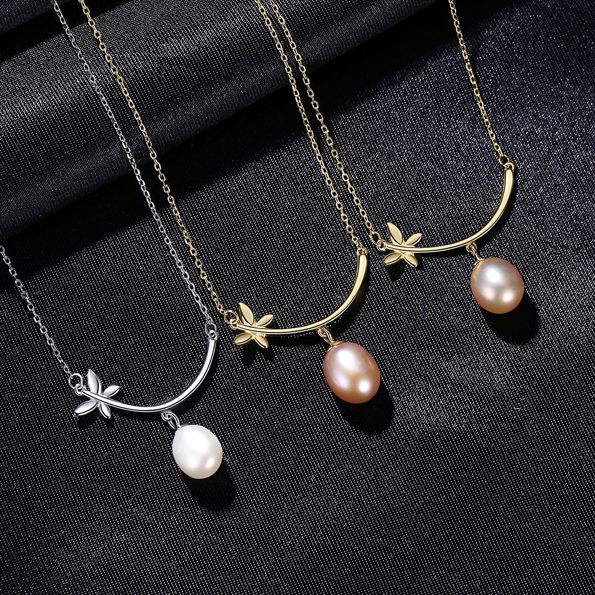 Aetolia 925 Sterling Silver Natural Freshwater Pearl Necklace Butterfly Pendant Necklace FN-0238