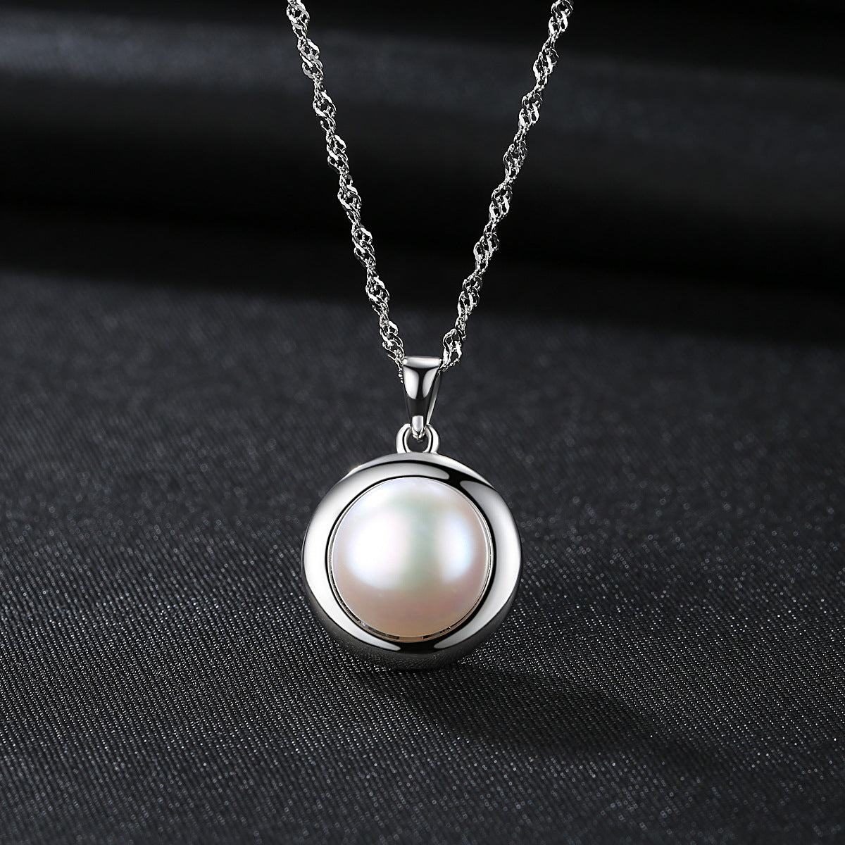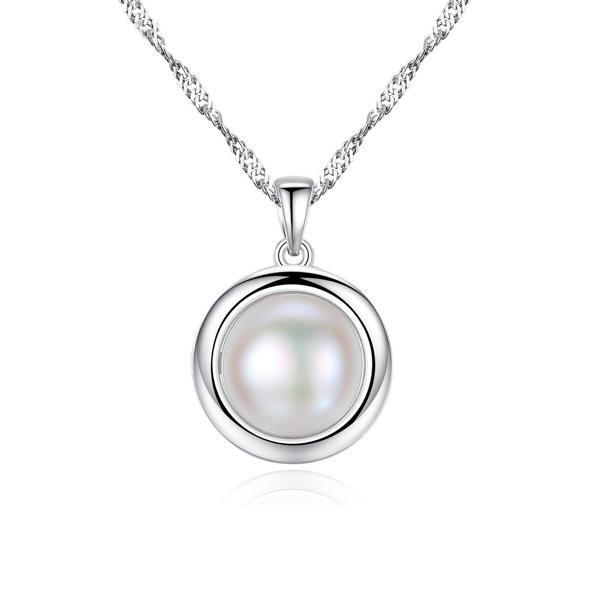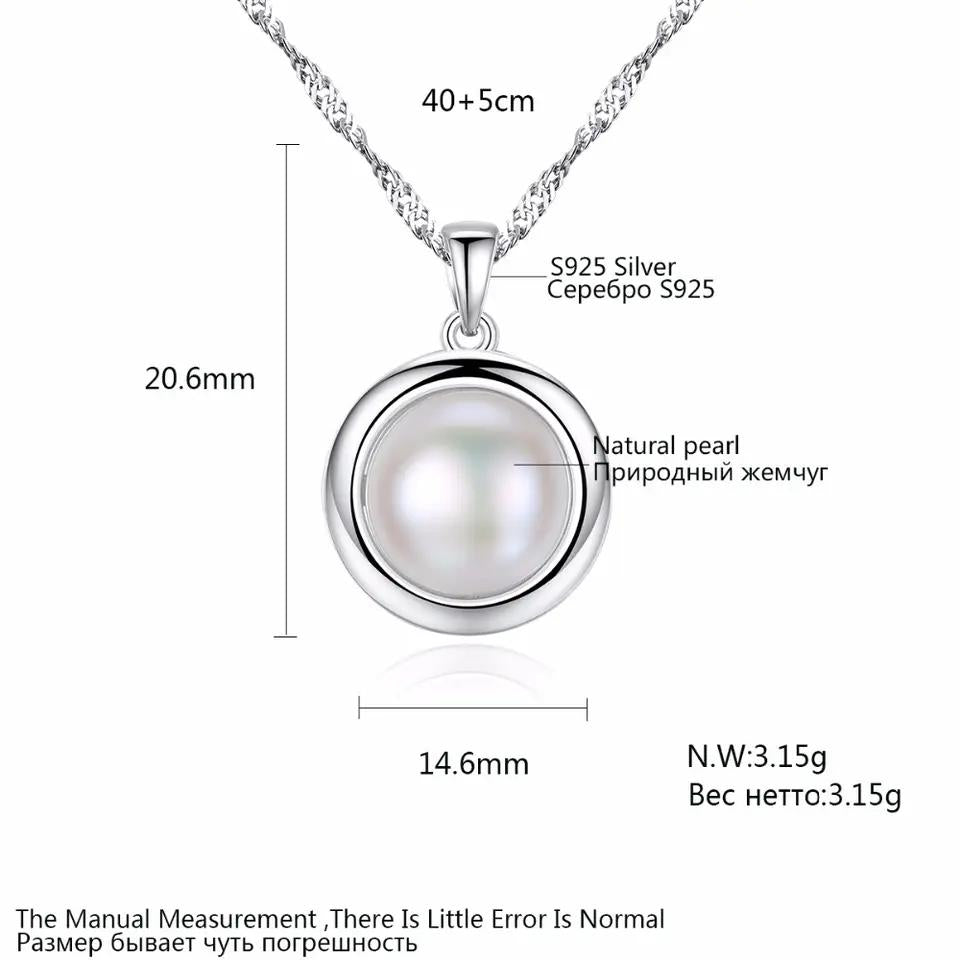 Aetolia 925 Sterling Silver Natural Freshwater Pearl Necklace Elegant White Pearl Pendant Necklace FN0078