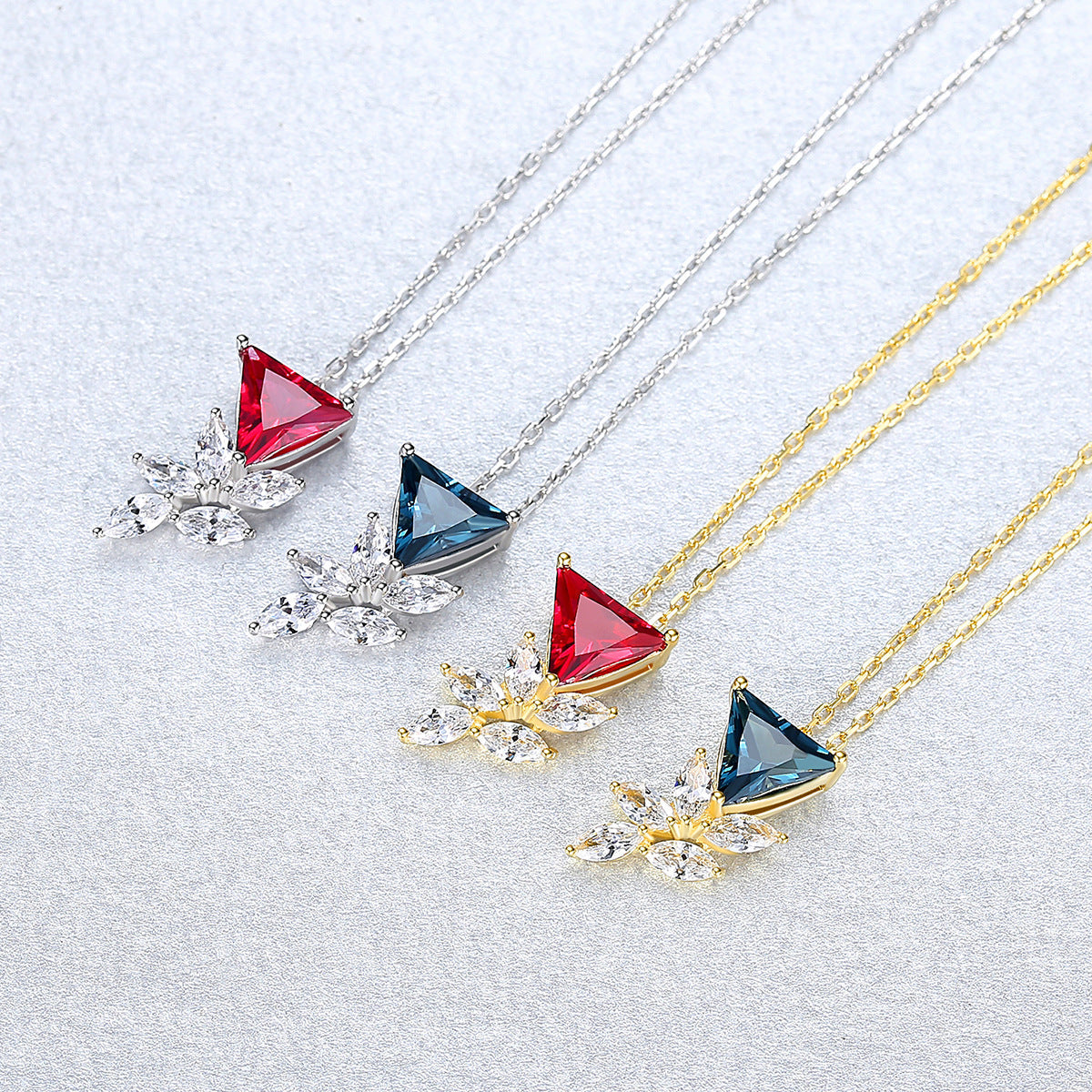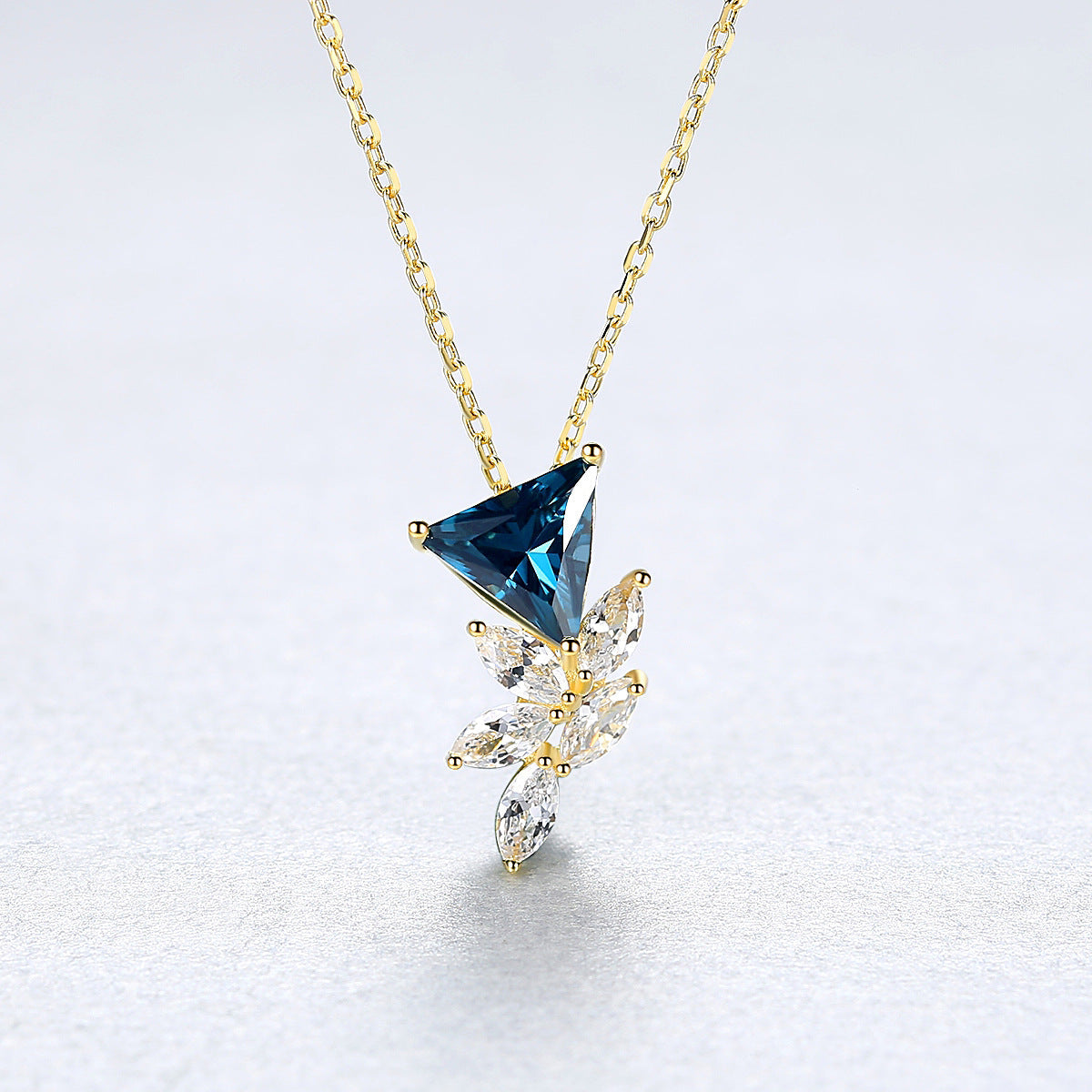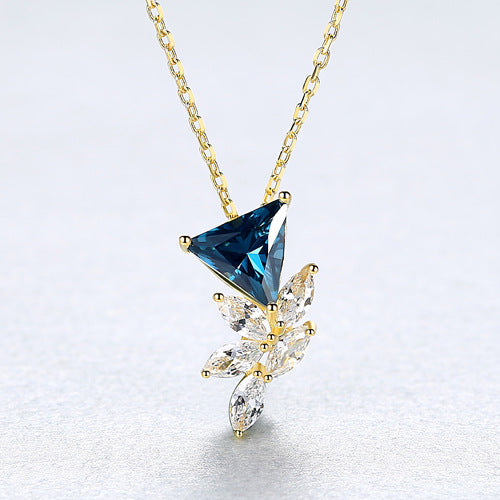 Aetolia 925 Sterling Silver 18K Gold Plated Unique Triangle Gemstone Flower CZ Diamond Pendant Necklace SN0405