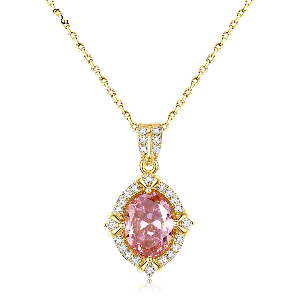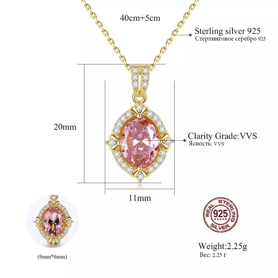 Aetolia 925 Sterling Silver 18K Gold Plated Oval Pink Gemstone Halo CZ Diamond Pendant Necklace SN0130