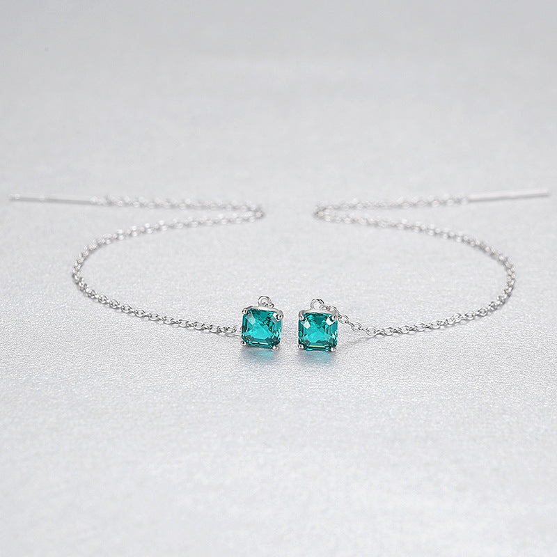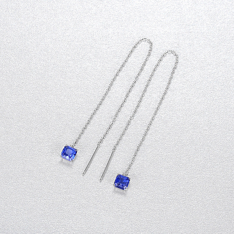 Aetolia 925 Sterling Silver 18K Gold Plated Square Gemstones Long Line Tassel Dangle Earrings Chain SE-512