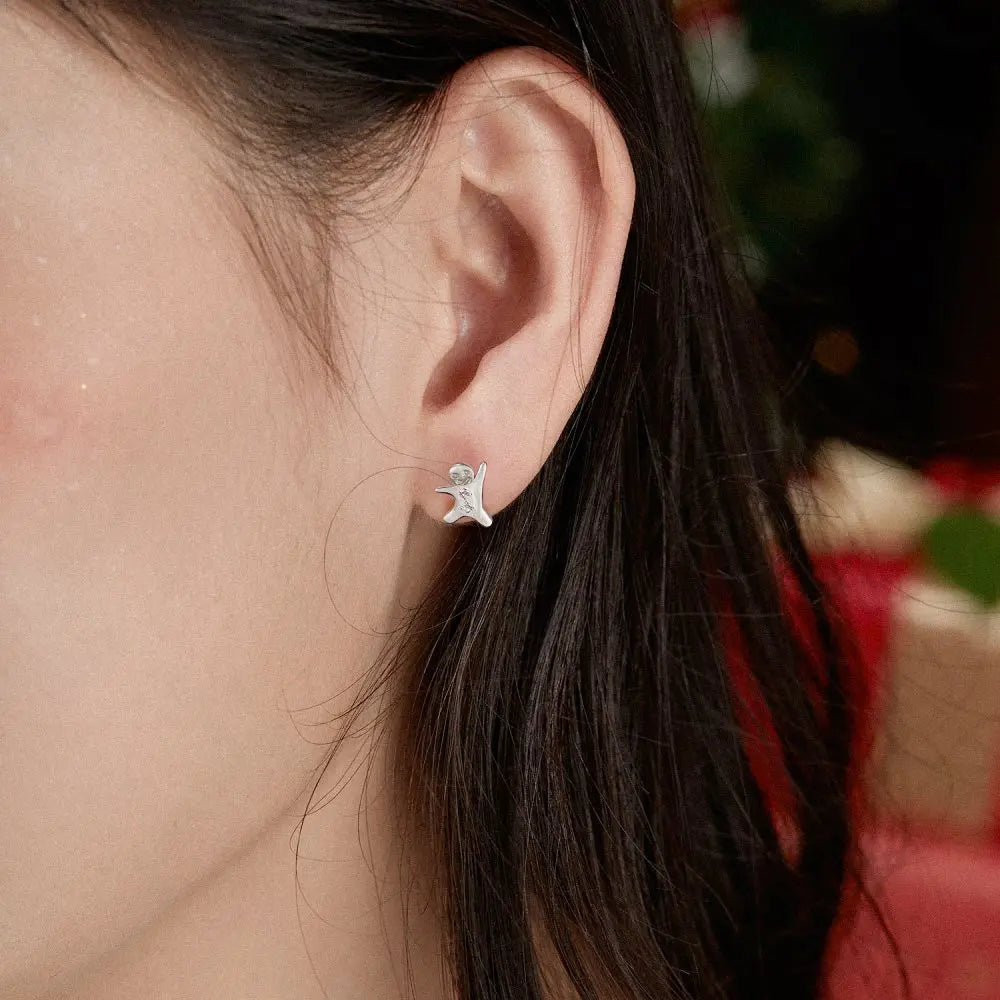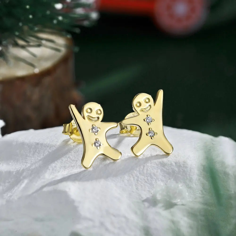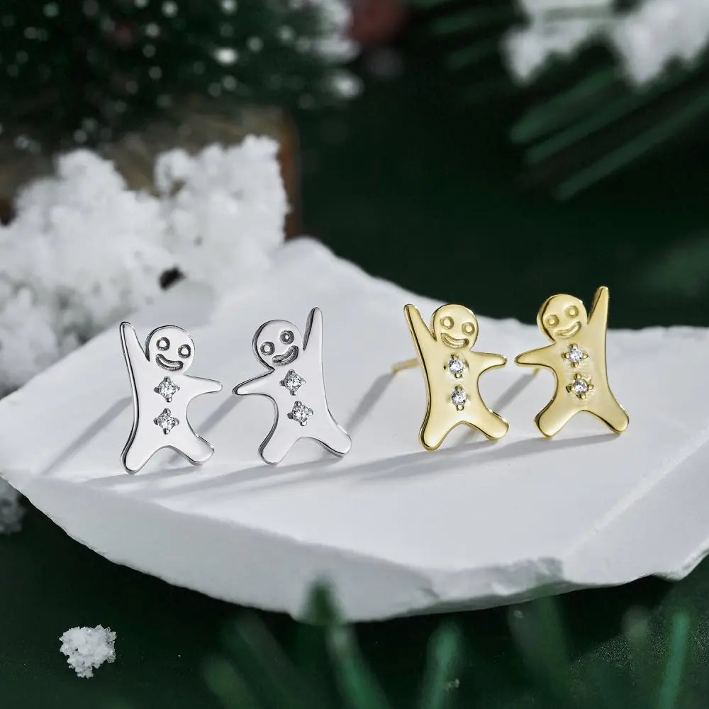 Aetolia Gingerbread Man Ear Christmas Gift Authentic 925 Sterling Silver 18K Gold Plated Ear Stud Earrings For Women Fine Jewelry Xmas