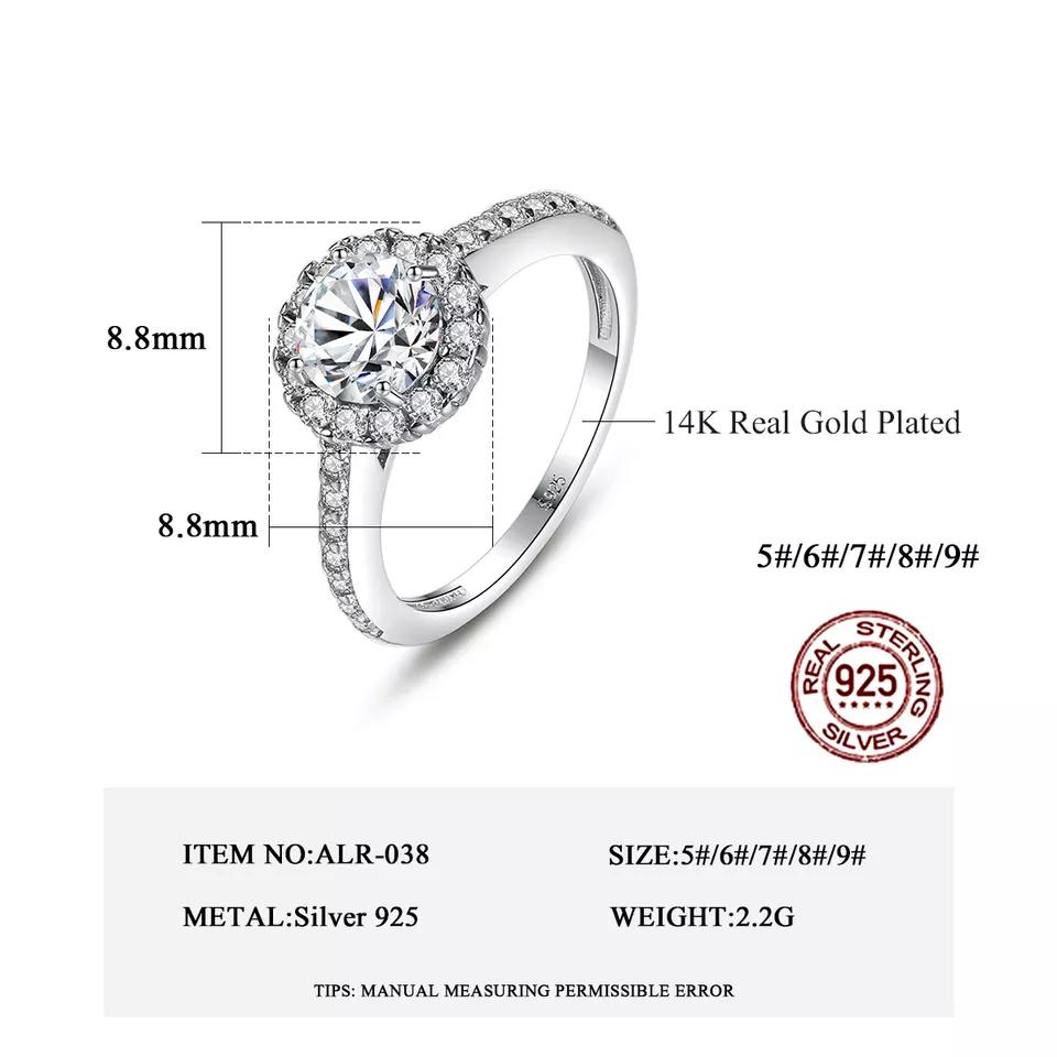 Aetolia 925 Sterling Silver 18K Gold Plated Sparkle Halo Round Solitaire Engagement Wedding Ring ALR-038