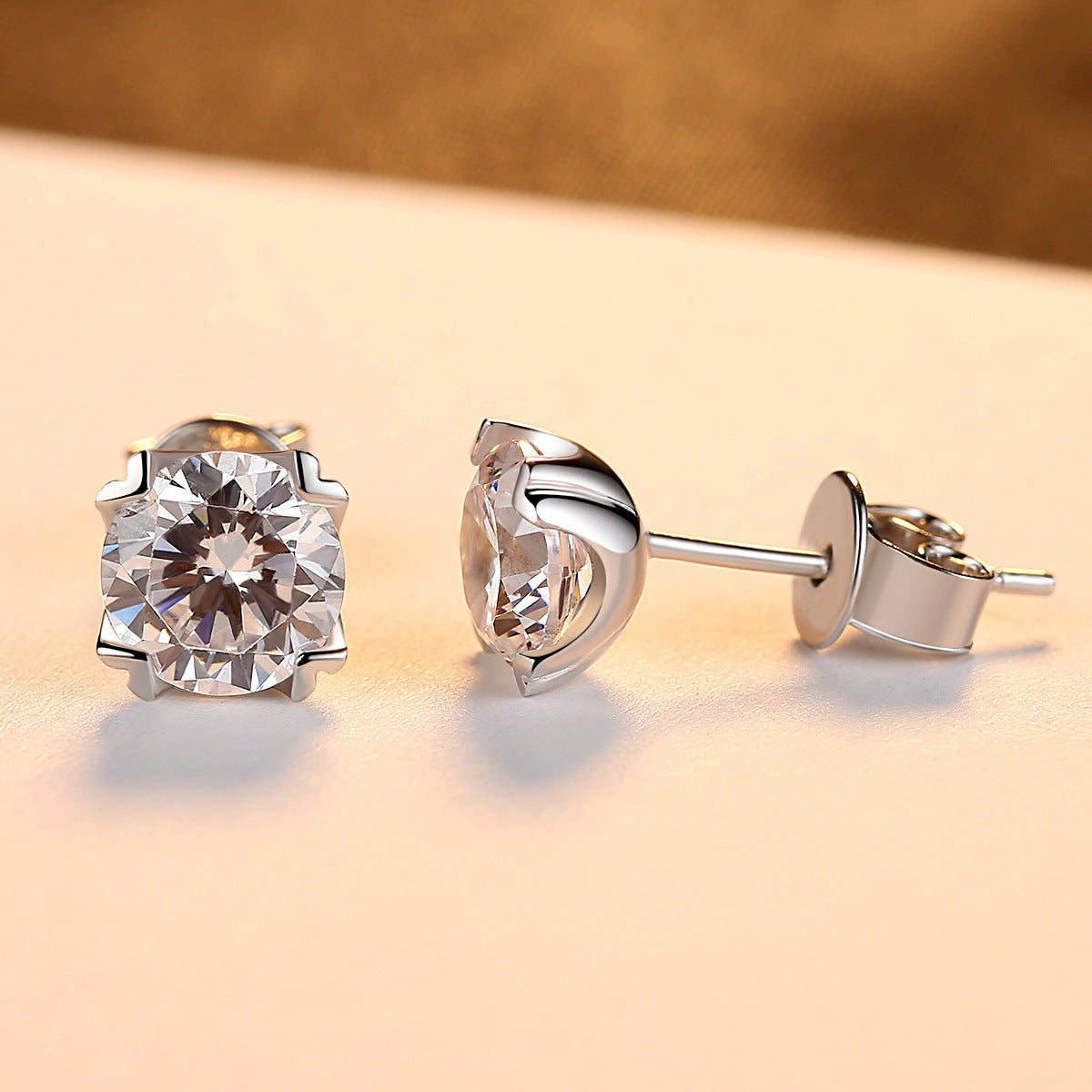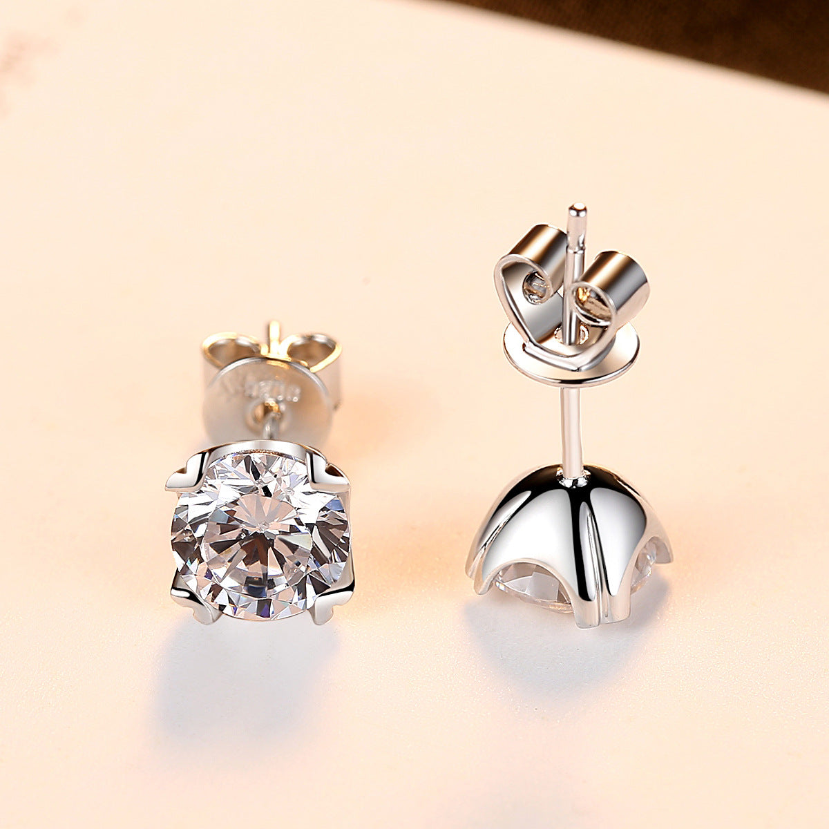 Aetolia 925 Sterling Silver 18K Gold Plated Heart 4 Prongs Round Solitaire Stud Earrings SE0101