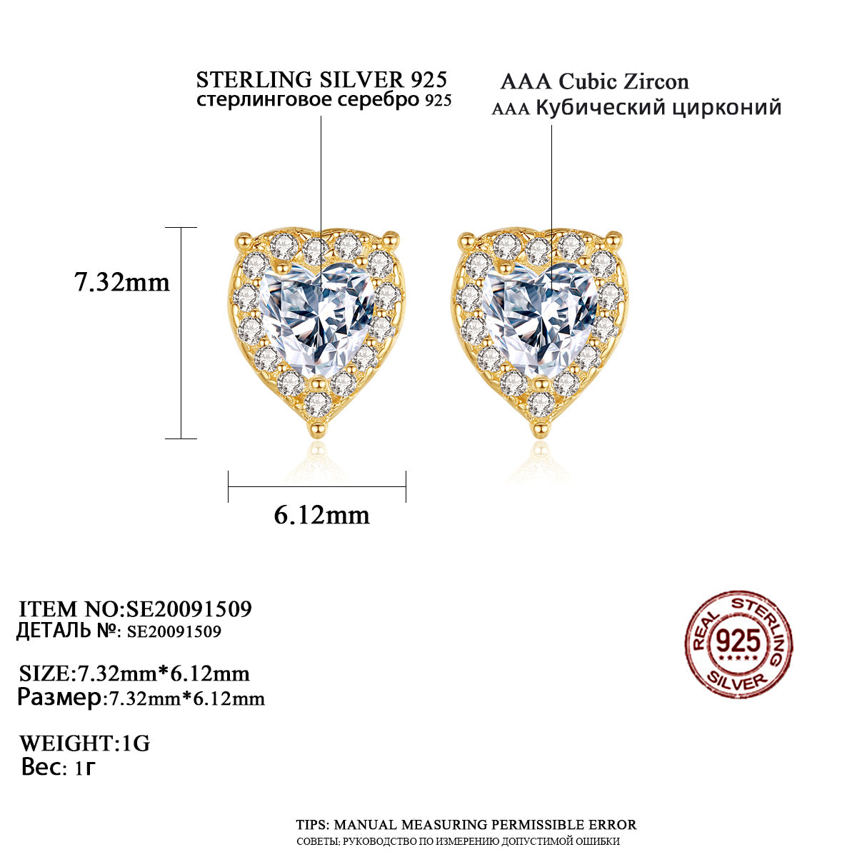 Aetolia 925 Sterling Silver 18K Gold Plated Trendy Heart Halo Stud Earrings SE20091509