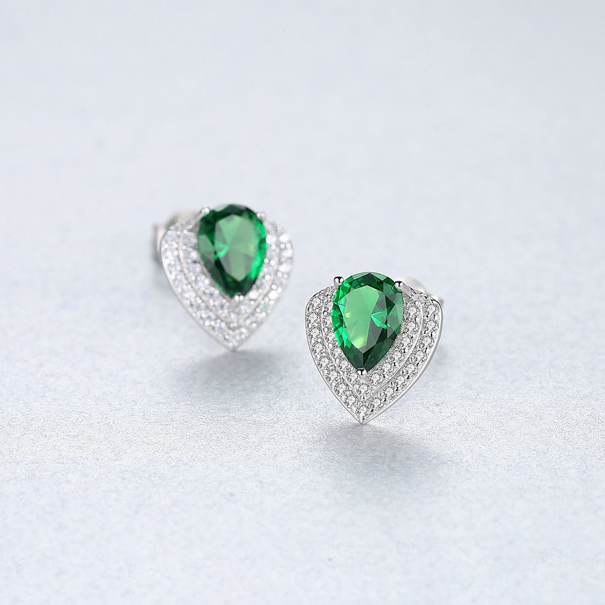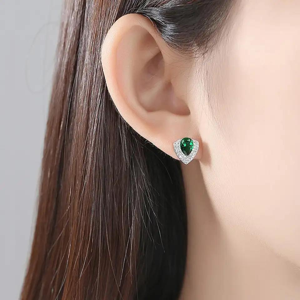 Aetolia 925 Sterling Silver 18K Gold Plated Pear Gemstone Heart Shaped Halo CZ Diamond Stud Earrings SE0360
