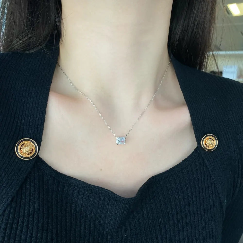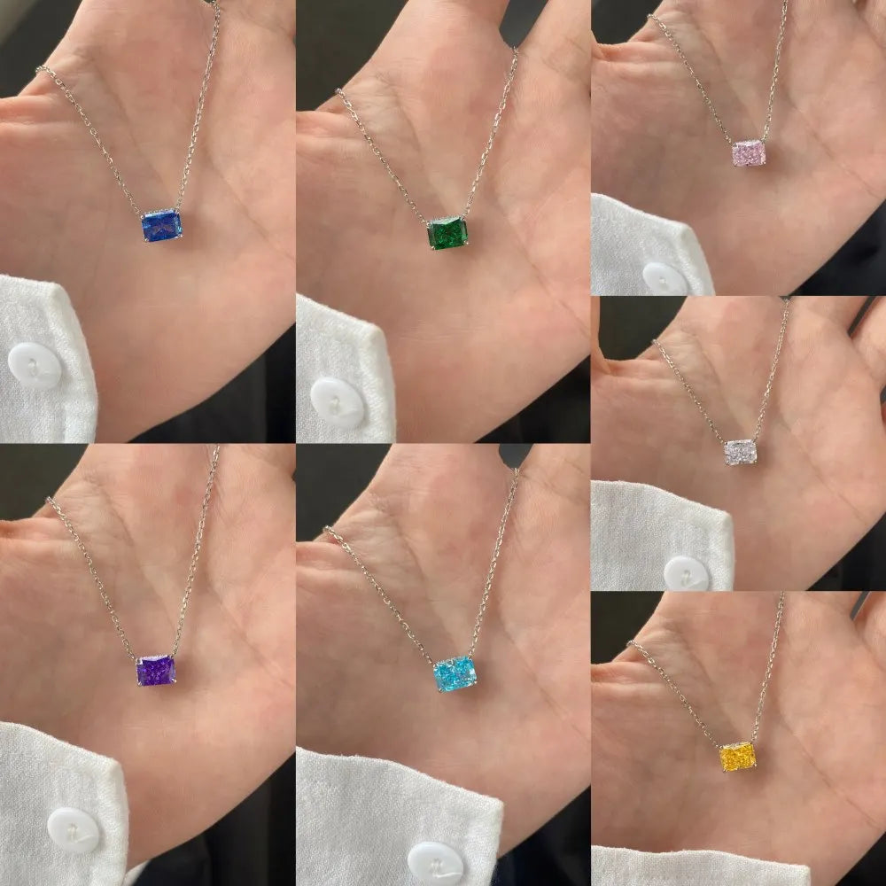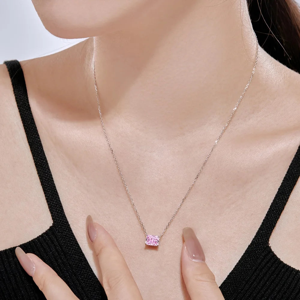 Aetolia High End 925 Sterling Silver Necklace Rectangle 8A Ice Cut Cubic Zirconia Luxury Necklace Pendant Jewelry Pink Necklaces Women
