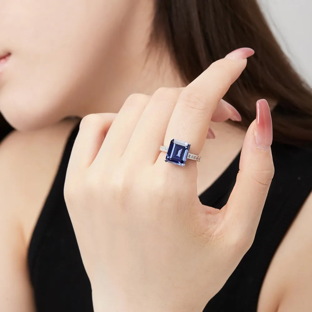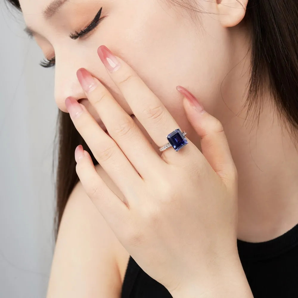Aetolia High Quality S925 Sterling Silver Blue Ring Trendy Eternity Band 5A Cubic Zirconia Rings Jewelry Women Engagement Wedding Ring