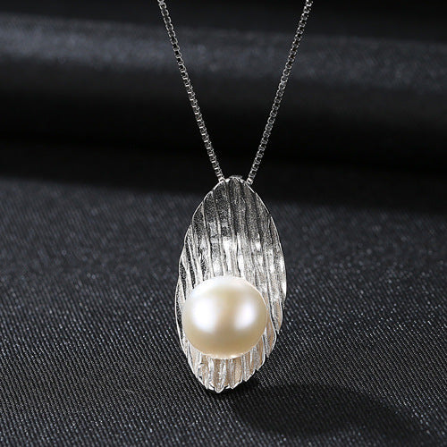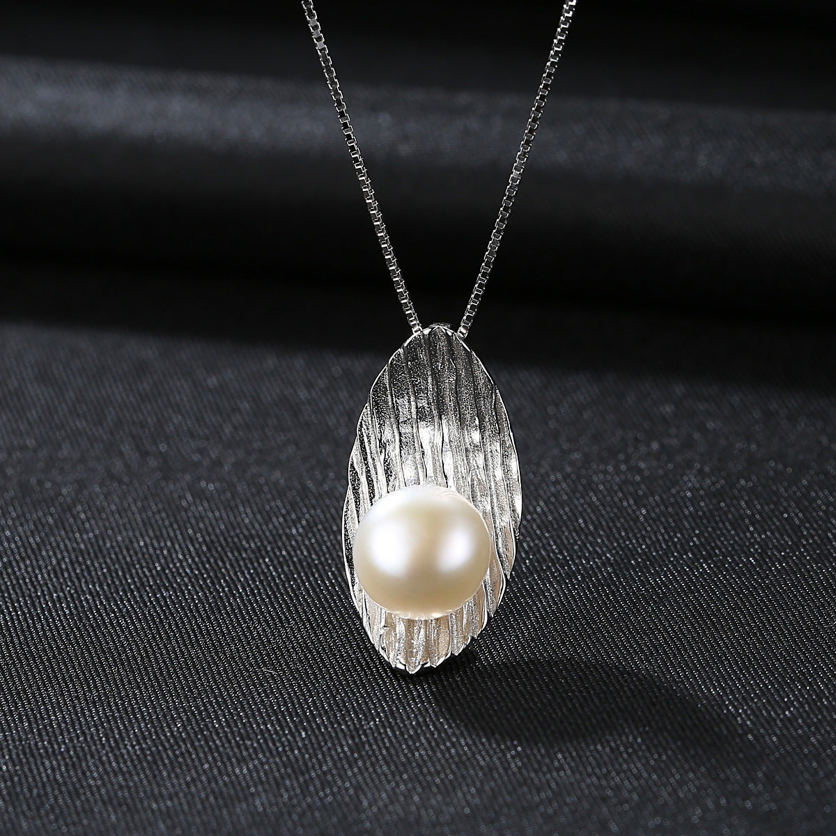 Aetolia 925 Sterling Silver Natural Freshwater Pearl Necklace Leaf Shaped Pendant Necklace FN0076