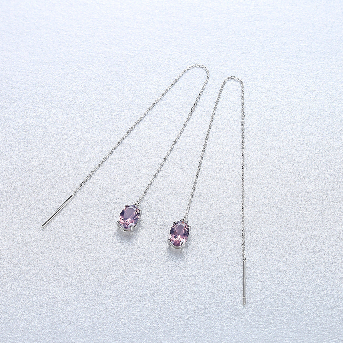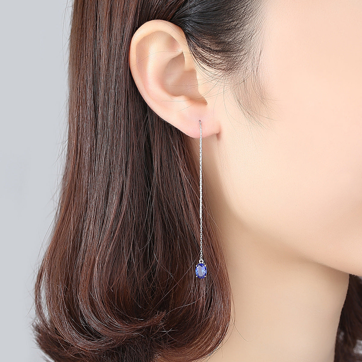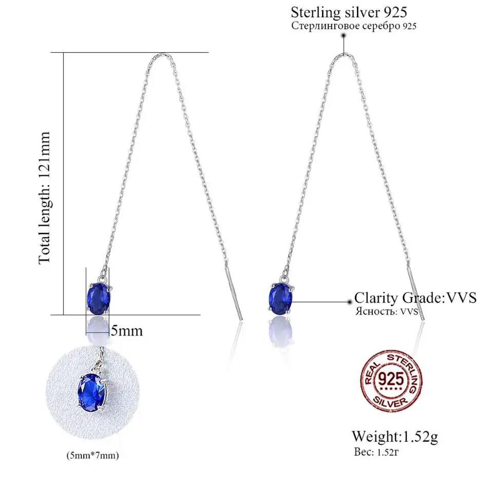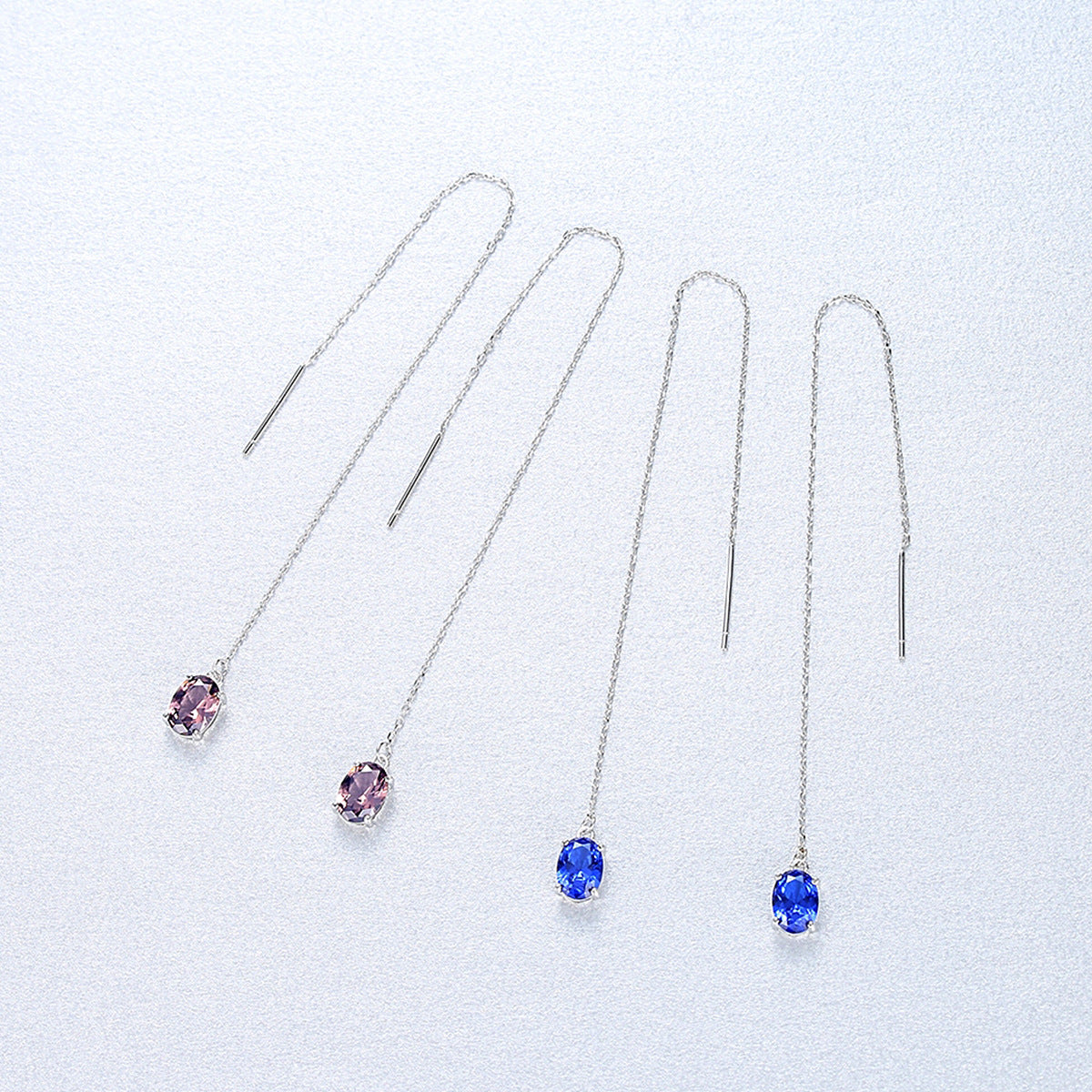 Aetolia 925 Sterling Silver 18K Gold Plated Oval Gemstones Long Line Tassel Dangle Earrings Chain SE0144