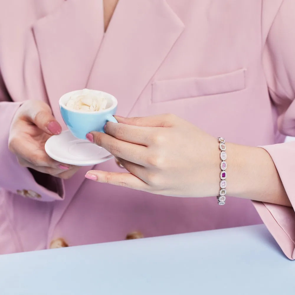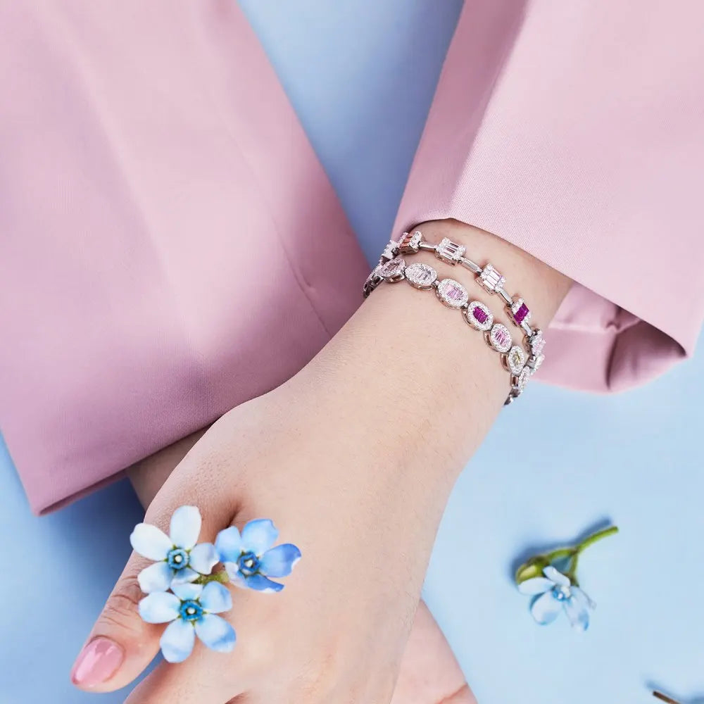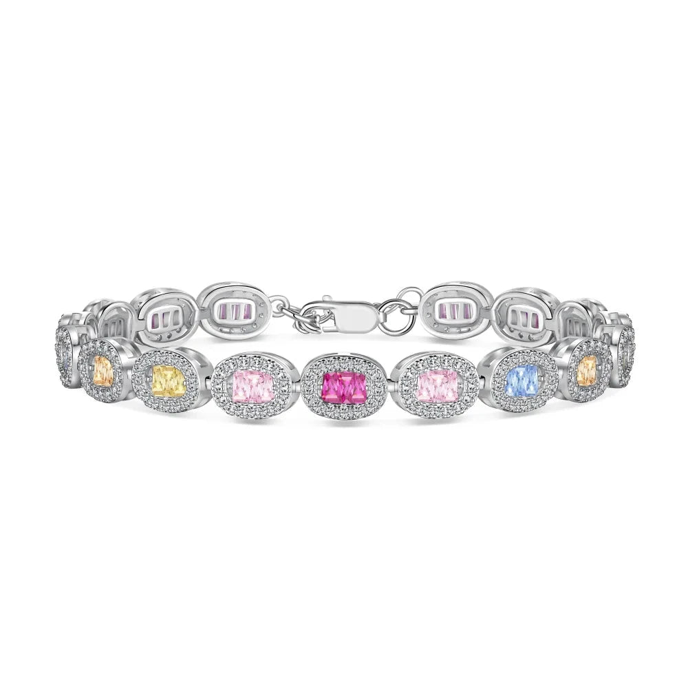 Aetolia Low Price Sparkling 925 Sterling Silver Bracelet Jewelry Set Cubic Zirconia Colorful Pink Stone Diamond Tennis Bracelets Women