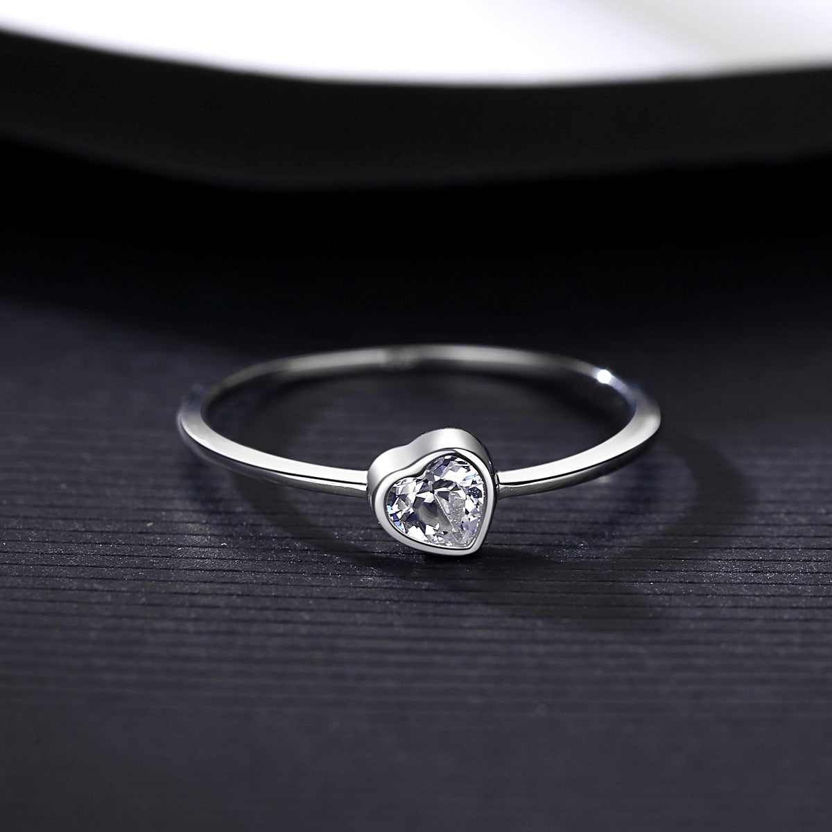 Aetolia 925 Sterling Silver 18K Gold Plated Minimalist Heart Bezel Set Solitaire Ring SR20071815