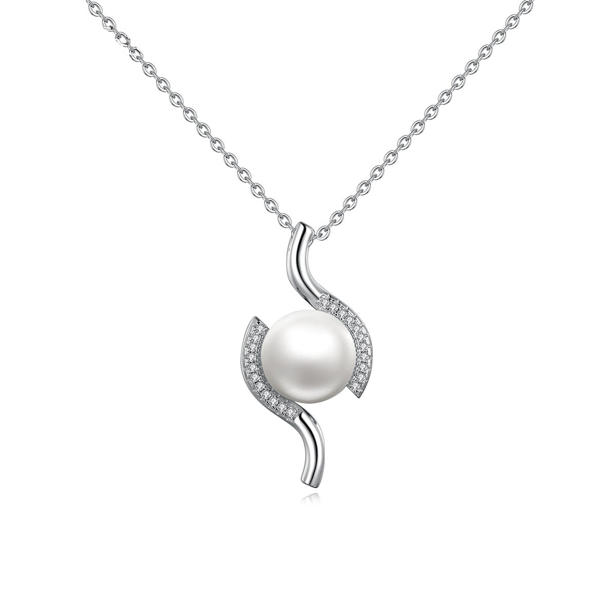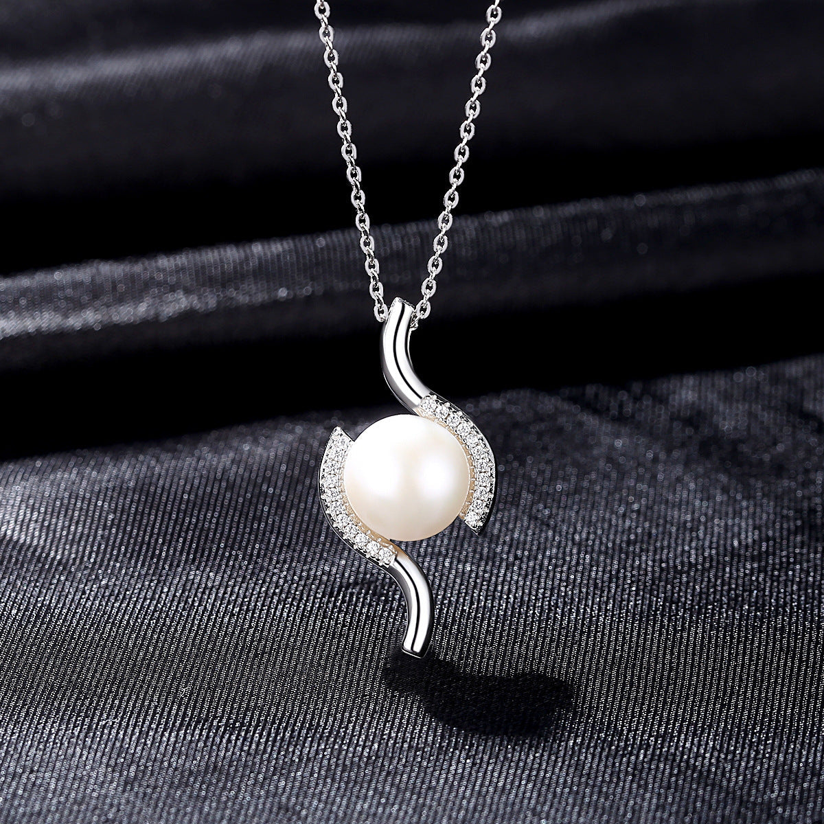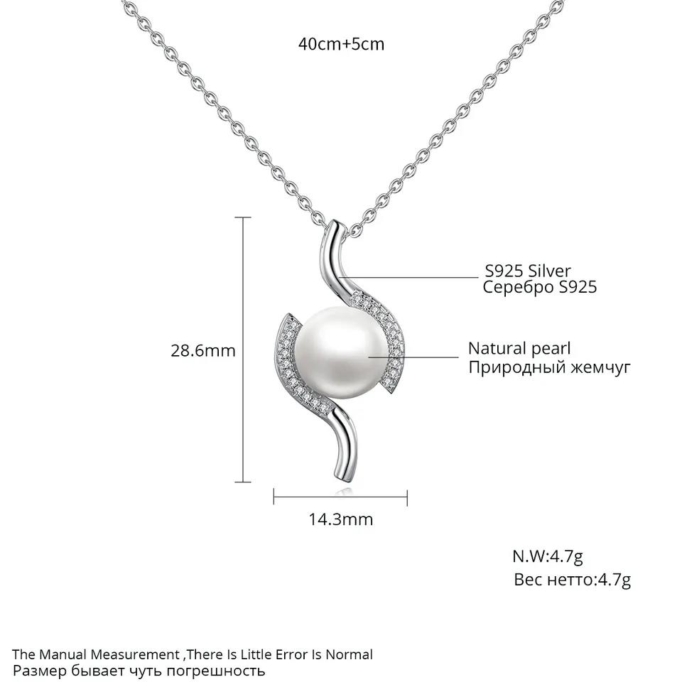 Aetolia 925 Sterling Silver Natural Freshwater Pearl Necklace Geometric CZ Diamond Pendant Necklace FN21081601