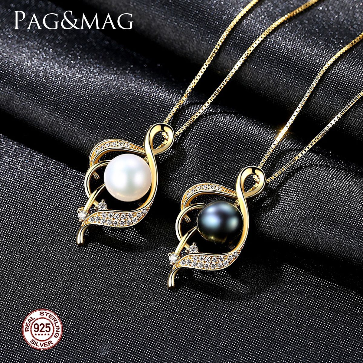 Aetolia 925 Sterling Silver Natural Freshwater Pearl Necklace Music Notation CZ Diamond Pendant Necklace FN0093