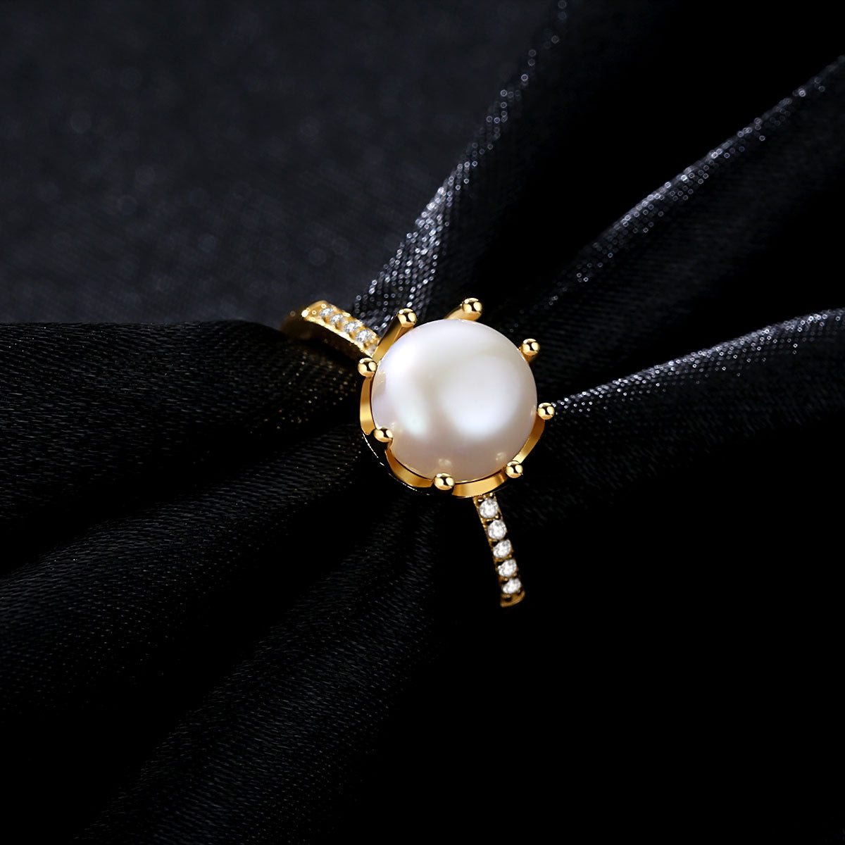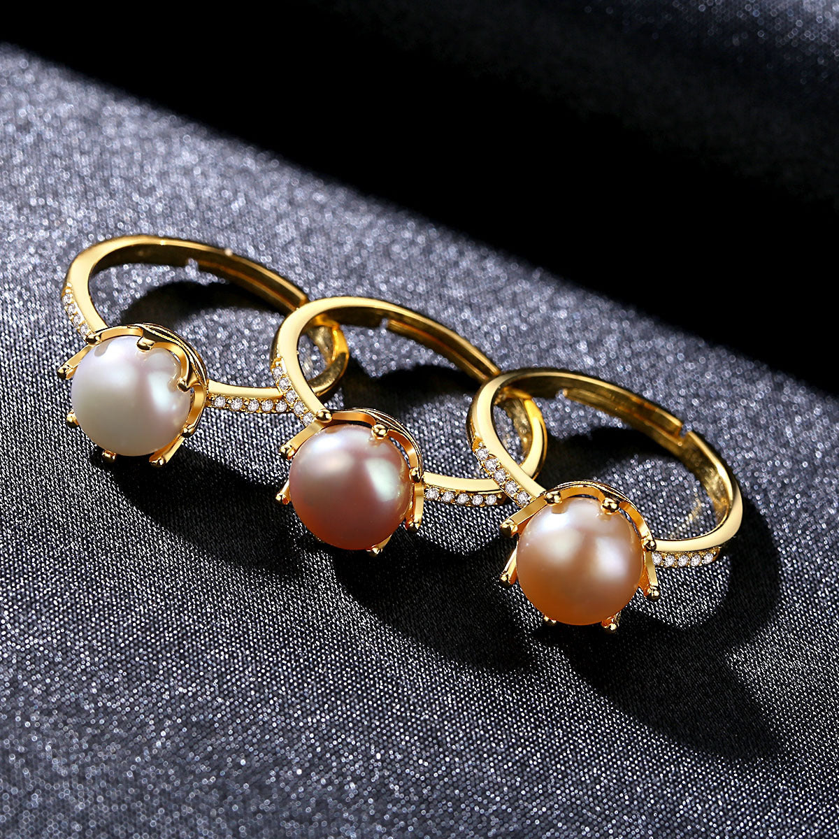 Aetolia 925 Sterling Silver Natural Freshwater Pearl Rings Eight Prong Crown Shaped Adjustable Open Ring FR0001