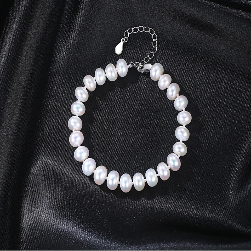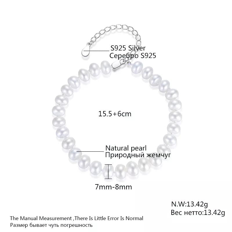 Aetolia 925 Sterling Silver Natural Freshwater Pearl Bracelet Bead Bangle Adjustable Chain Bracelet FB0011