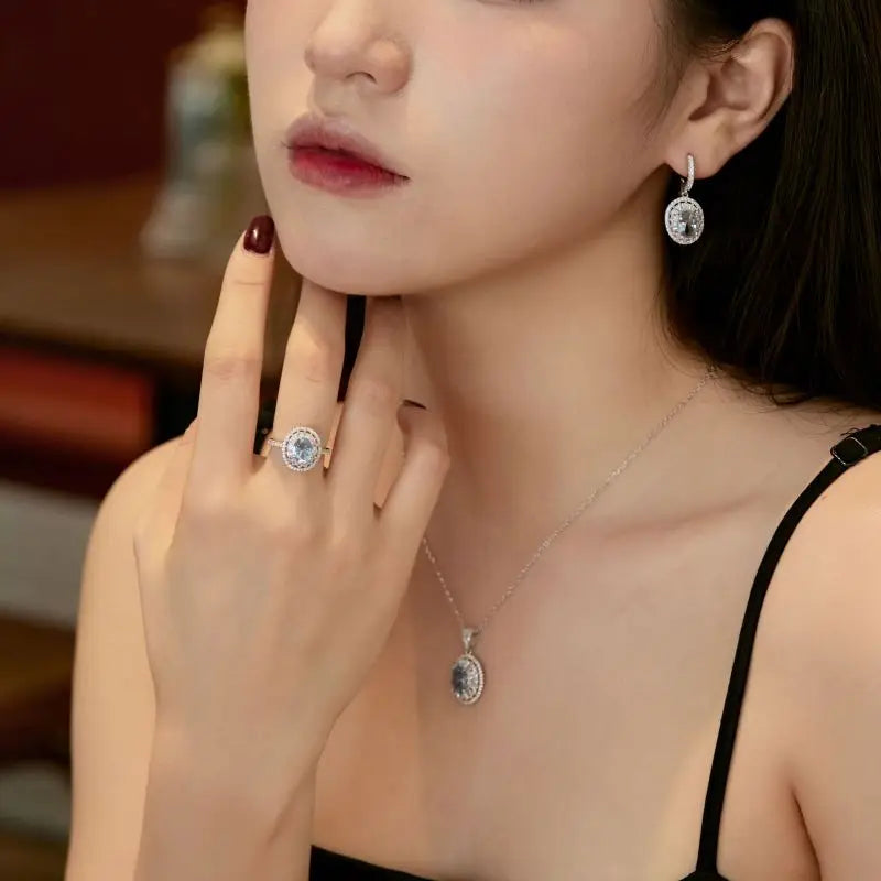 Aetolia New Arrival Multi Colors Oval 925 Sterling Silver Rings Women Diamond Blue Cubic Zircon Pendant Necklace Earring Jewelry Sets