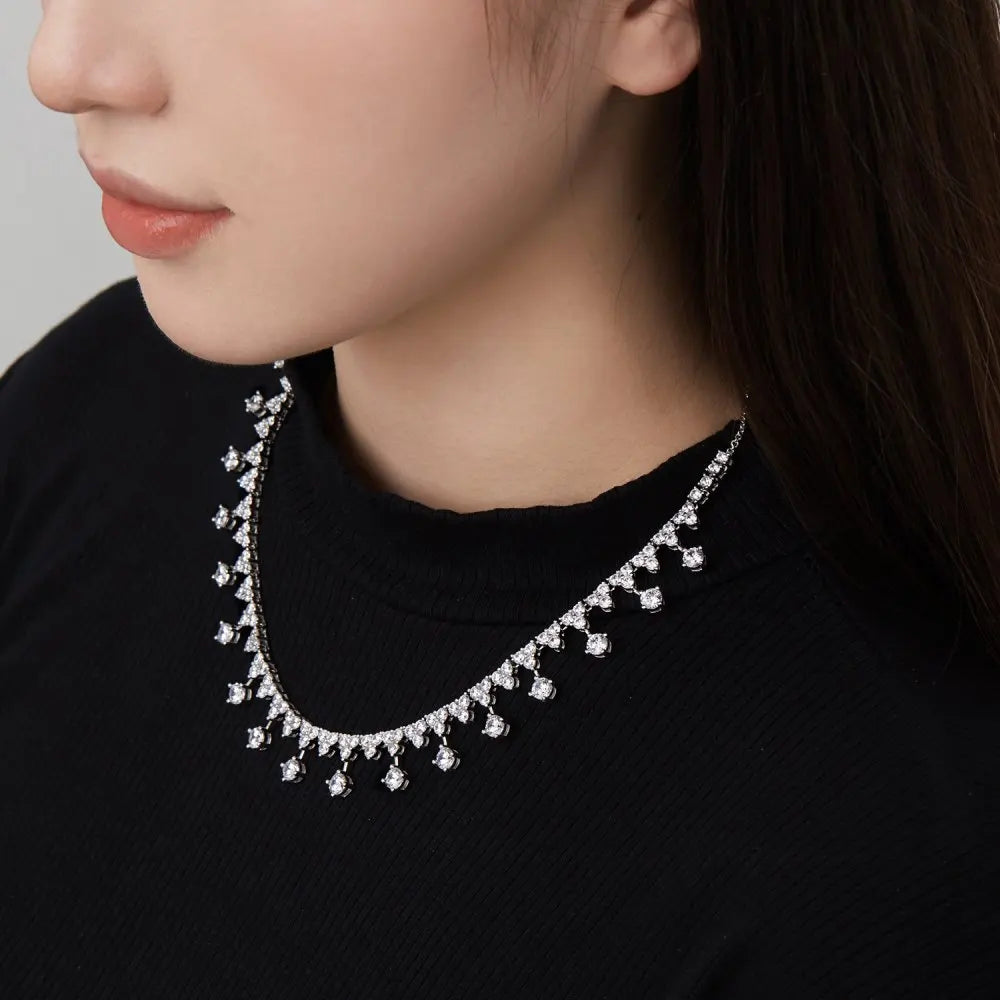 Aetolia New Arrival S925 Sterling Silver Necklace Big Cz Cubic Zirconia Chain Link Water Drop Round Diamond Pendant Necklaces For Women