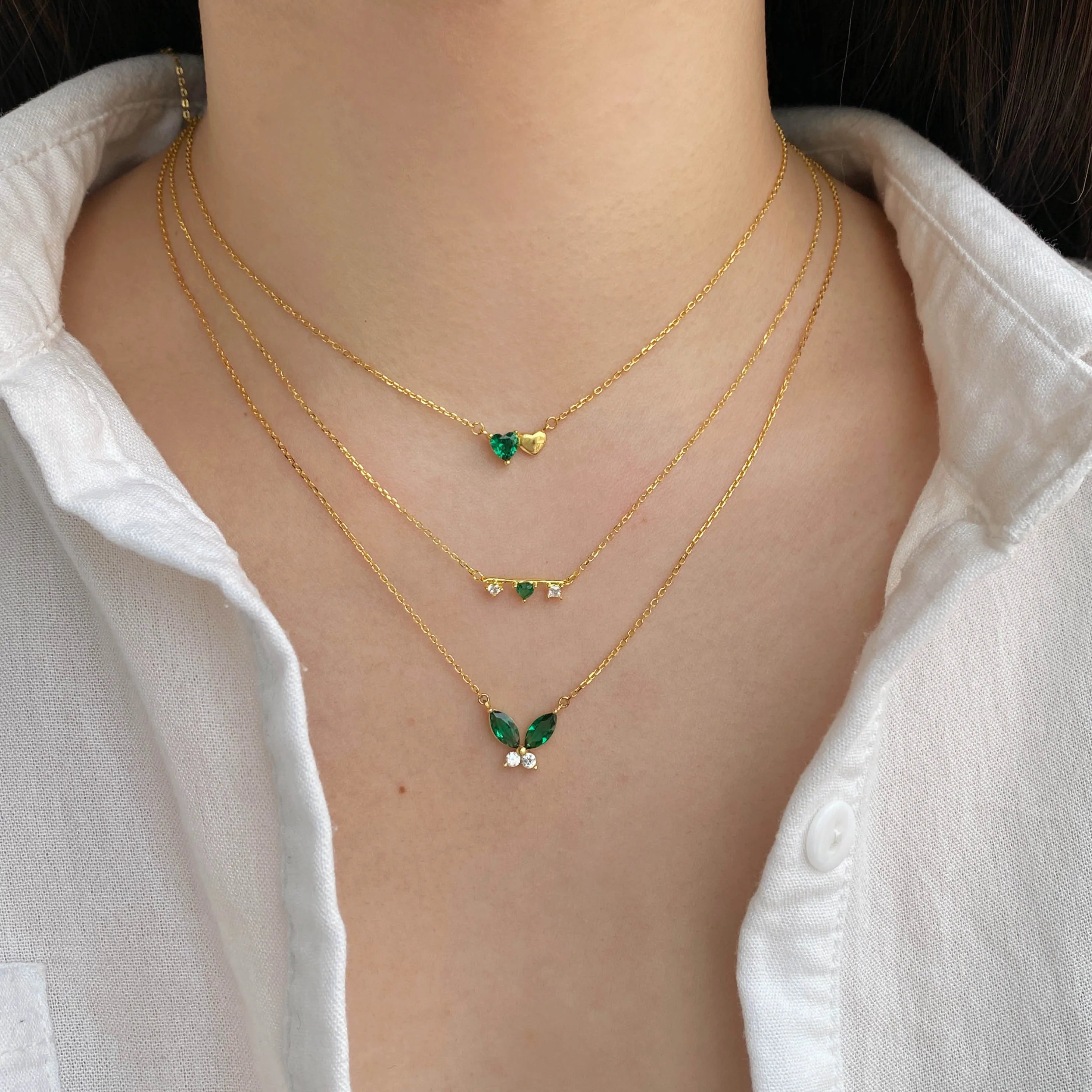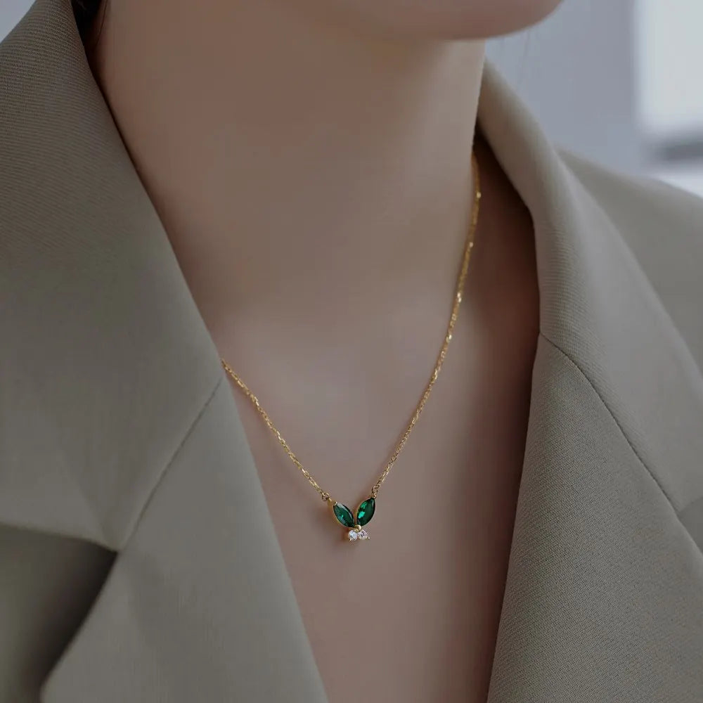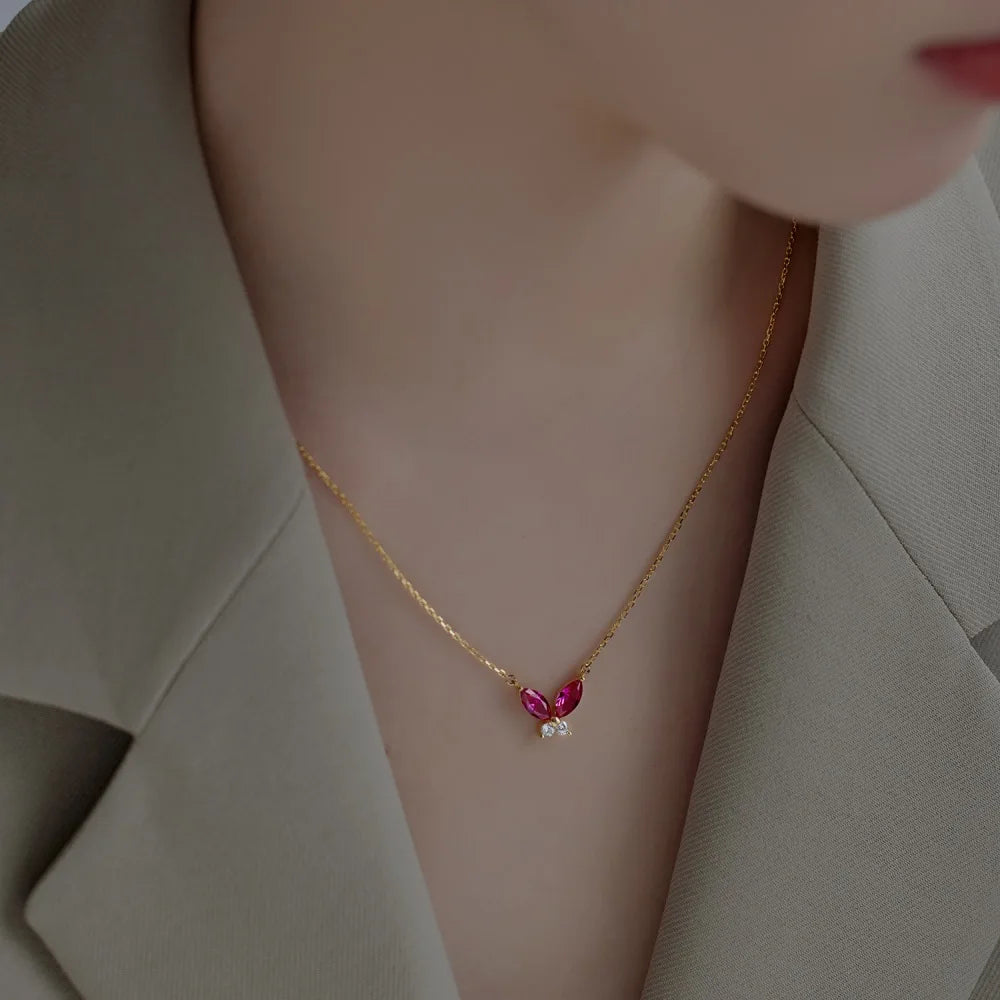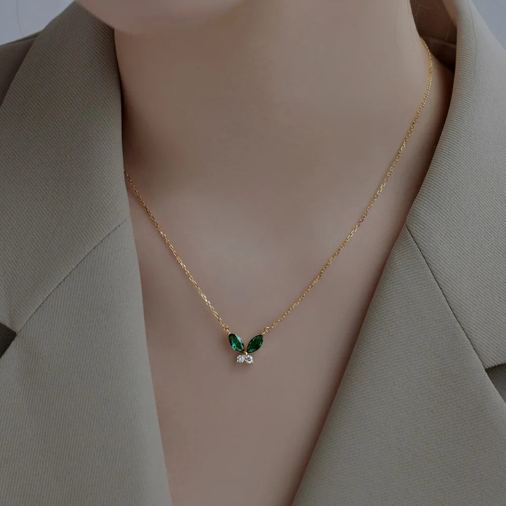 Aetolia Non Tarnish Free Waterproof Choker Jewelry Cubic Zircon 18K Gold Plated Necklace 925 Silver Red Green Butterfly Necklaces Women