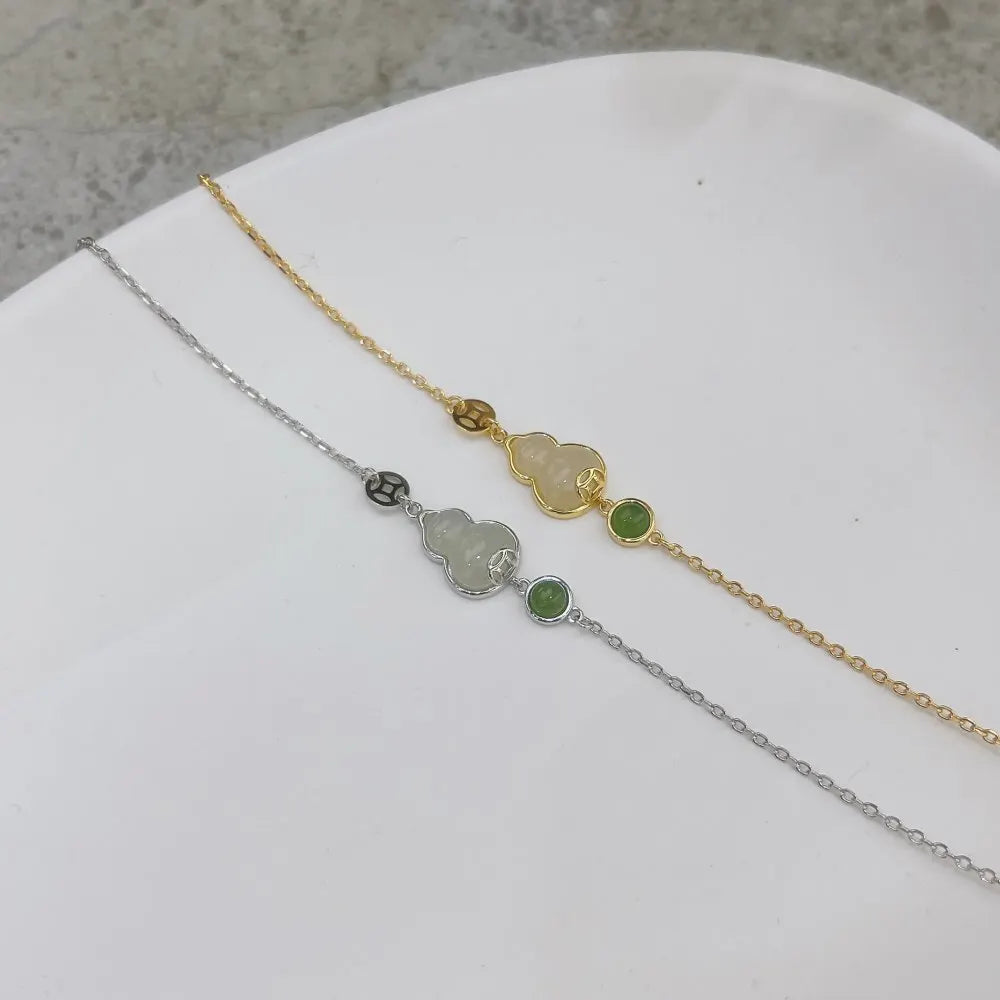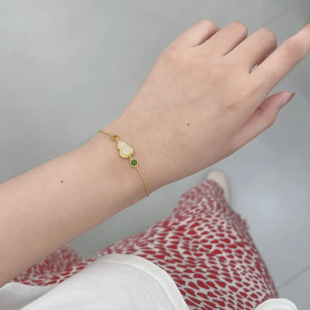 Aetolia Oem Odm Explosive Temperament 925 Sterling Silver Bracelet Bangle 18K Gold Plated Natural Hetian Jade Fulu Gourd Bracelets Women