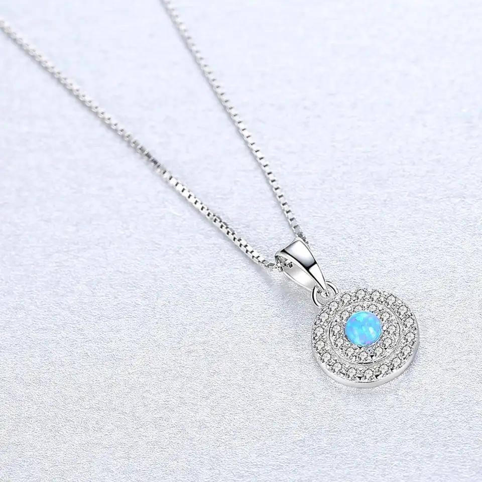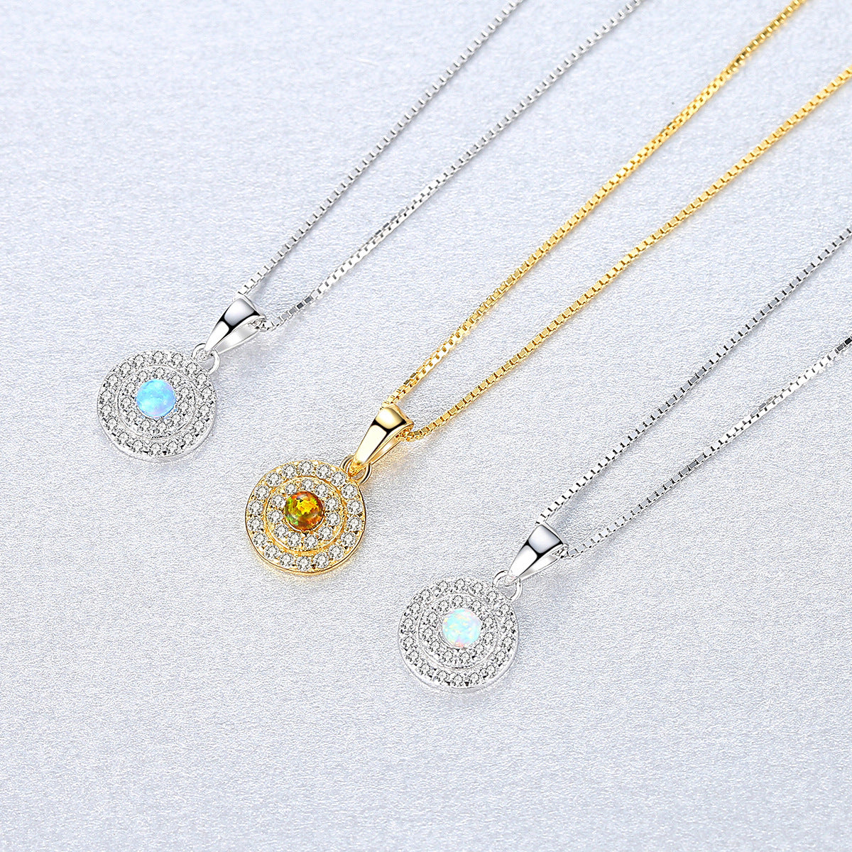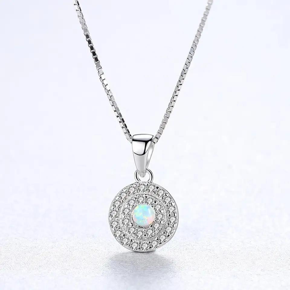 Aetolia 925 Sterling Silver Opal Necklace Round Double Layer Halo CZ Diamond Ball Opal Pendant Necklace SN0141