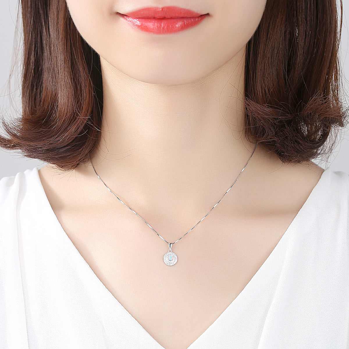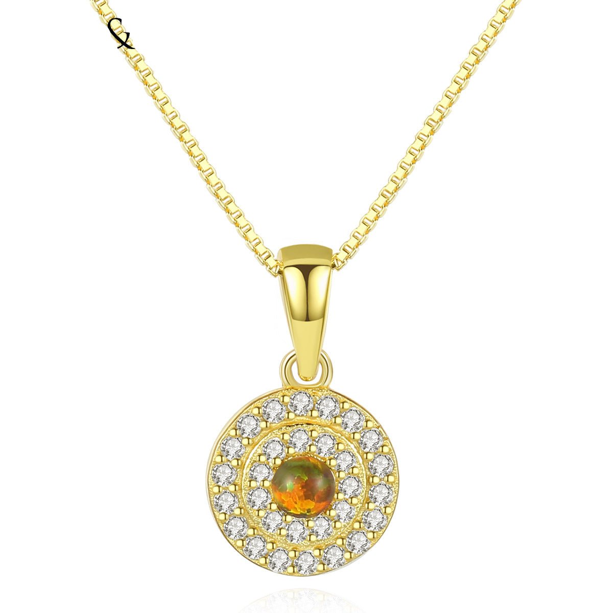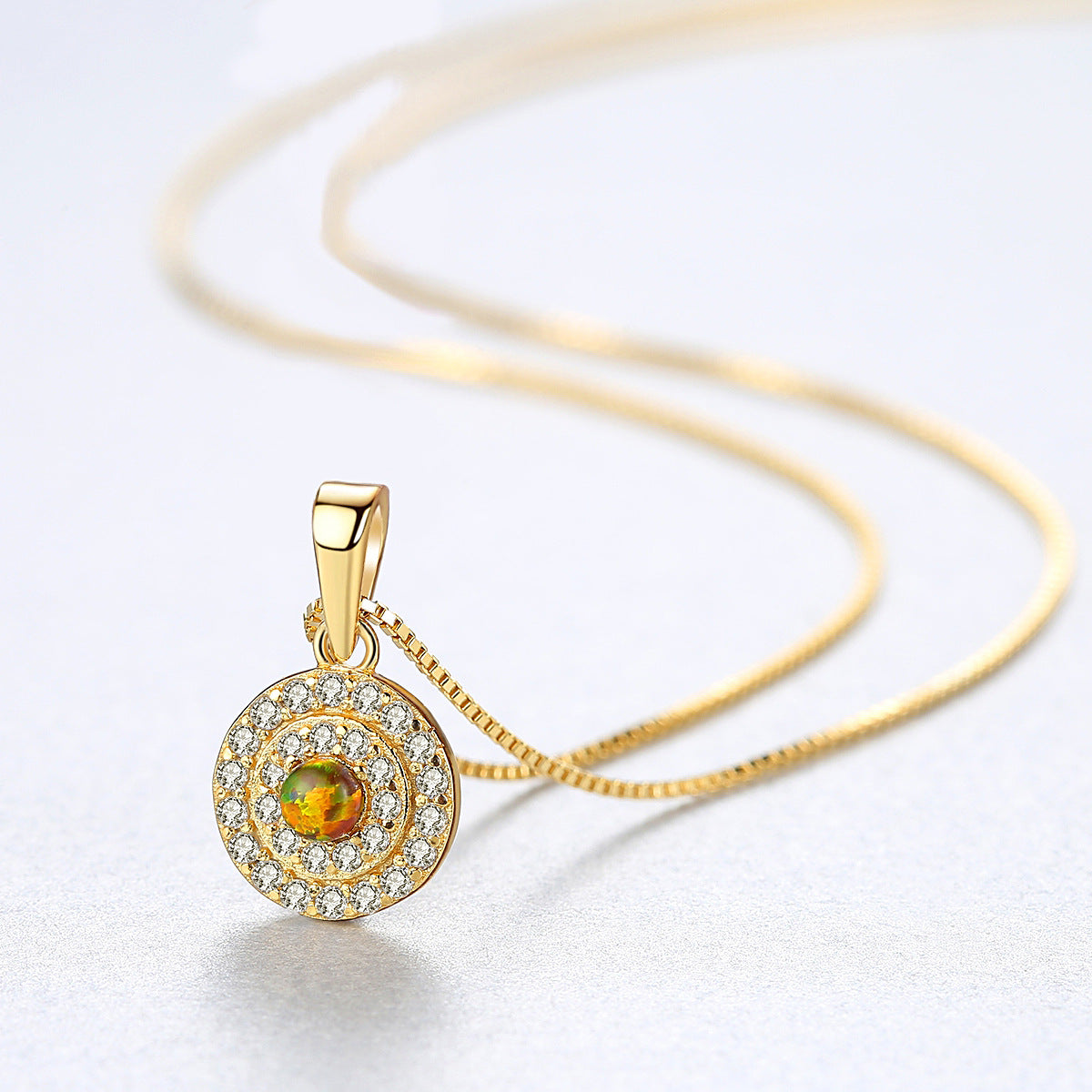 Aetolia 925 Sterling Silver Opal Necklace Round Double Layer Halo CZ Diamond Ball Opal Pendant Necklace SN0141