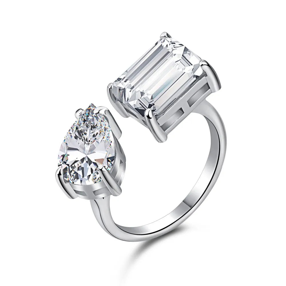 Aetolia Pear And Square Engagement Two Stone Dainty Adjustable 8A Zircon Wedding Ring Women 925 Sterling Silver Open Gemstone Rings