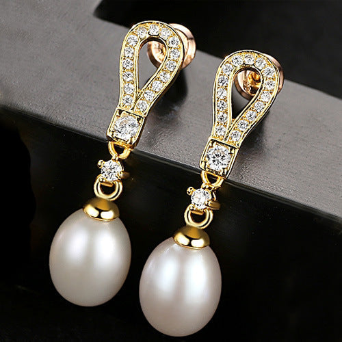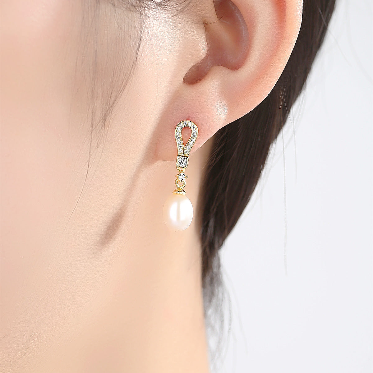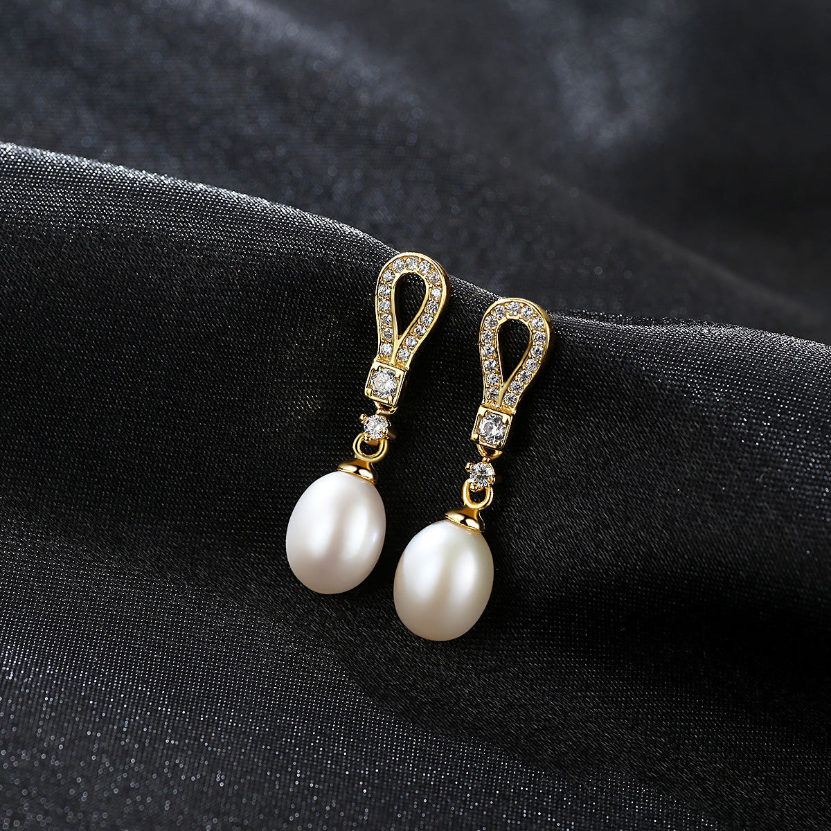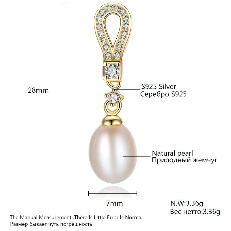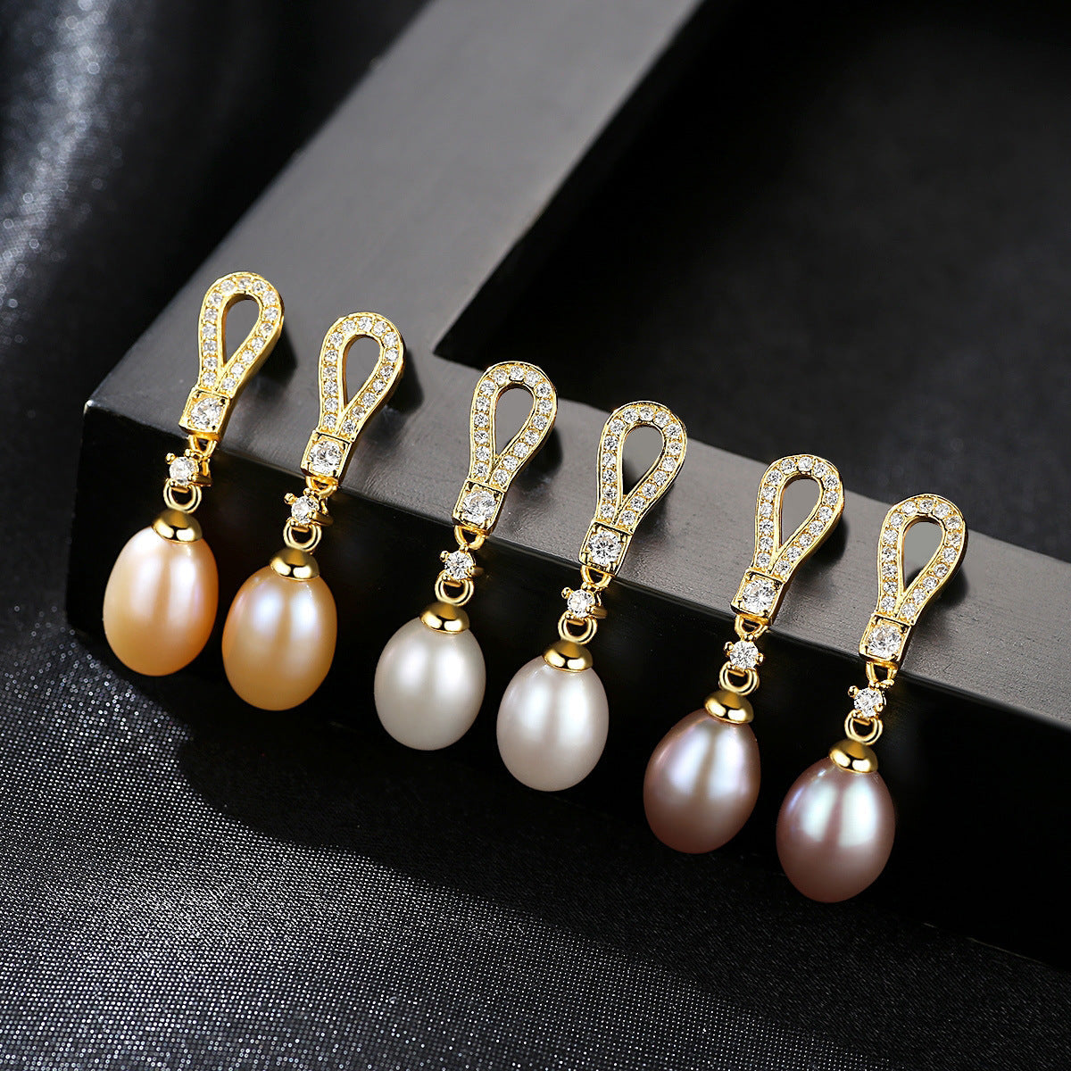 Aetolia 925 Sterling Silver Natural Freshwater Pearl Earrings Pear Halo CZ Diamond Dangle Stud Earrings FE0068
