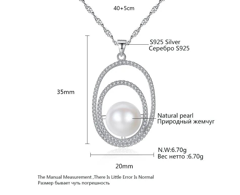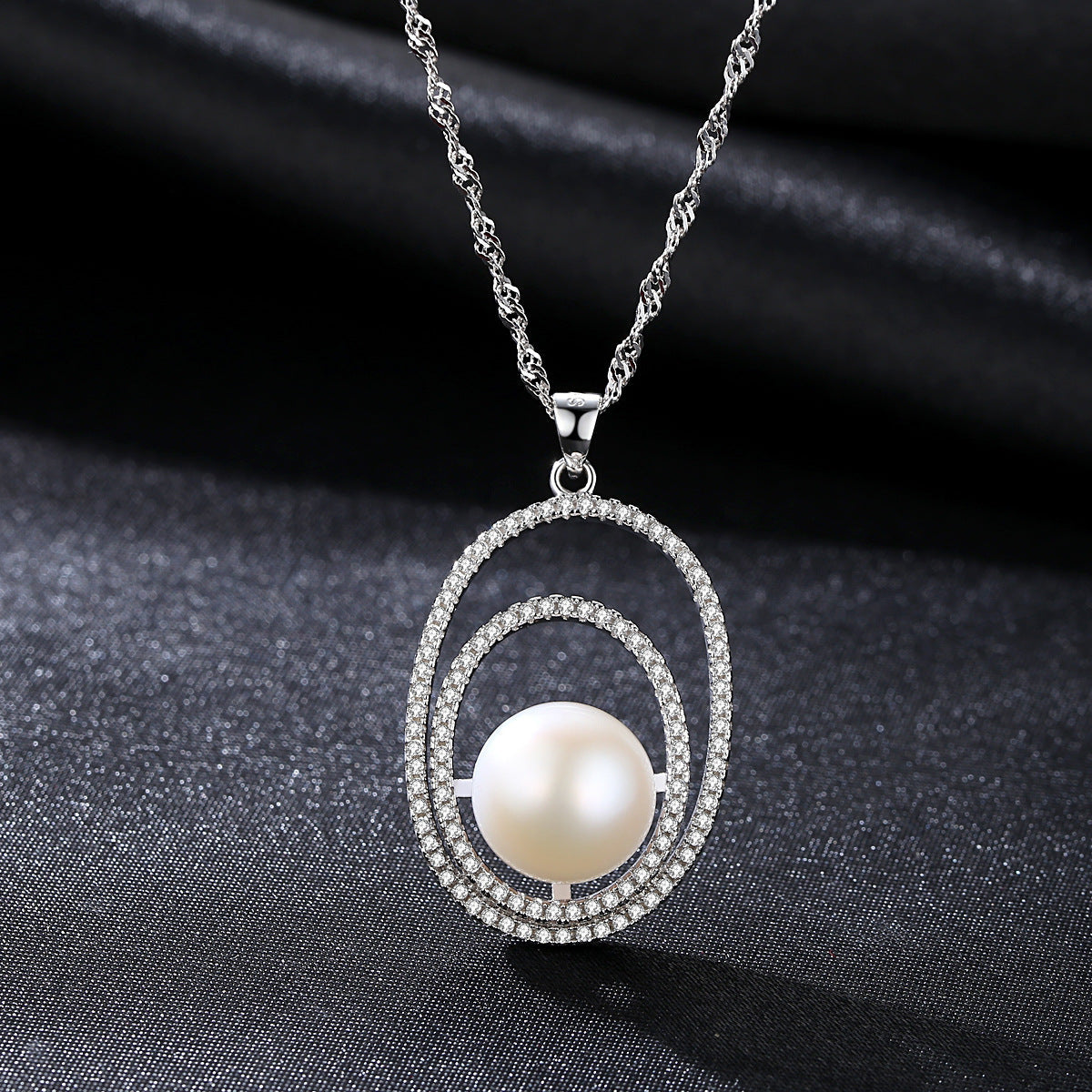 Aetolia 925 Sterling Silver Natural Freshwater Pearl Necklace Simple Double Circles CZ Diamond Pendant Necklace FN0022
