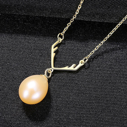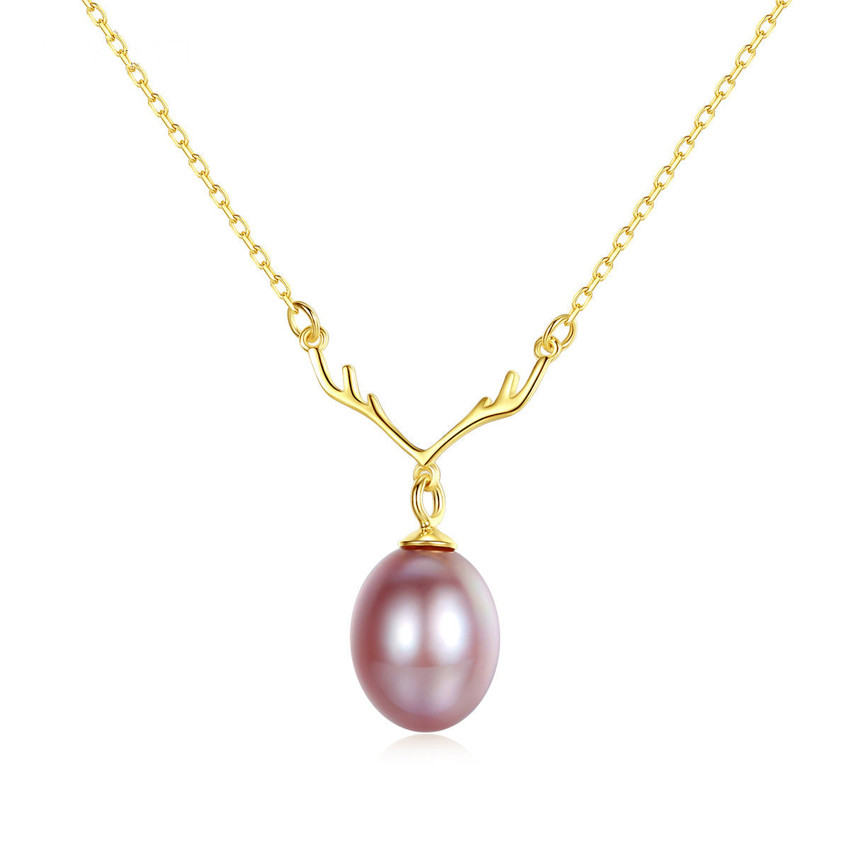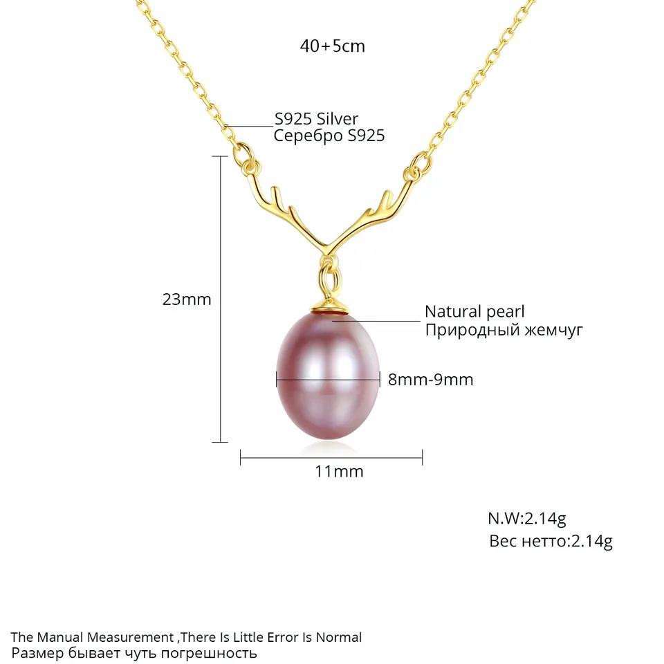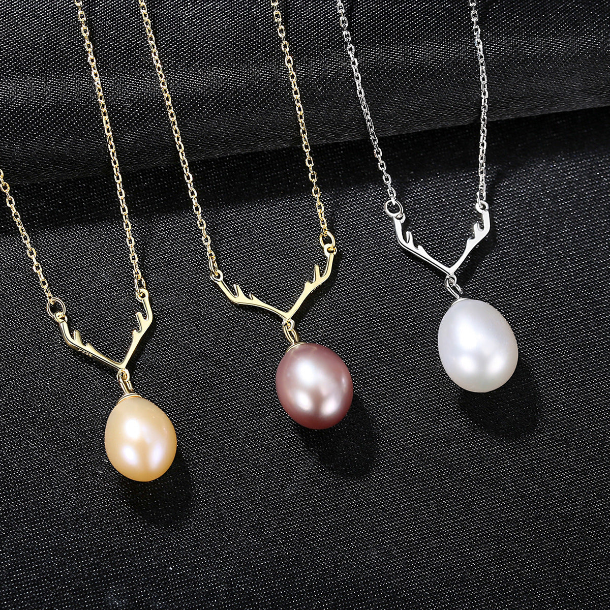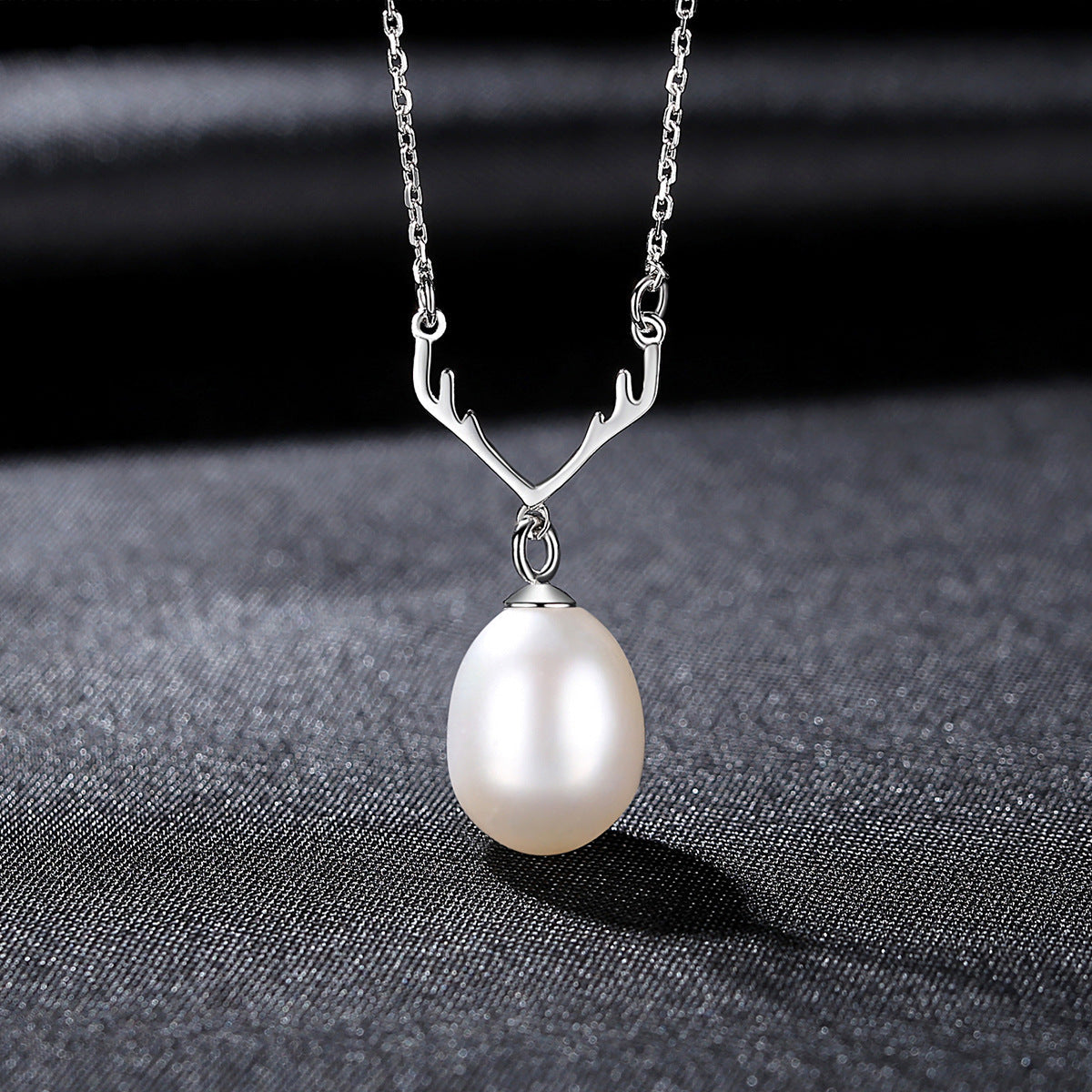 Aetolia 925 Sterling Silver Natural Freshwater Pearl Necklace Deer Antler Pendant Necklace FN0298