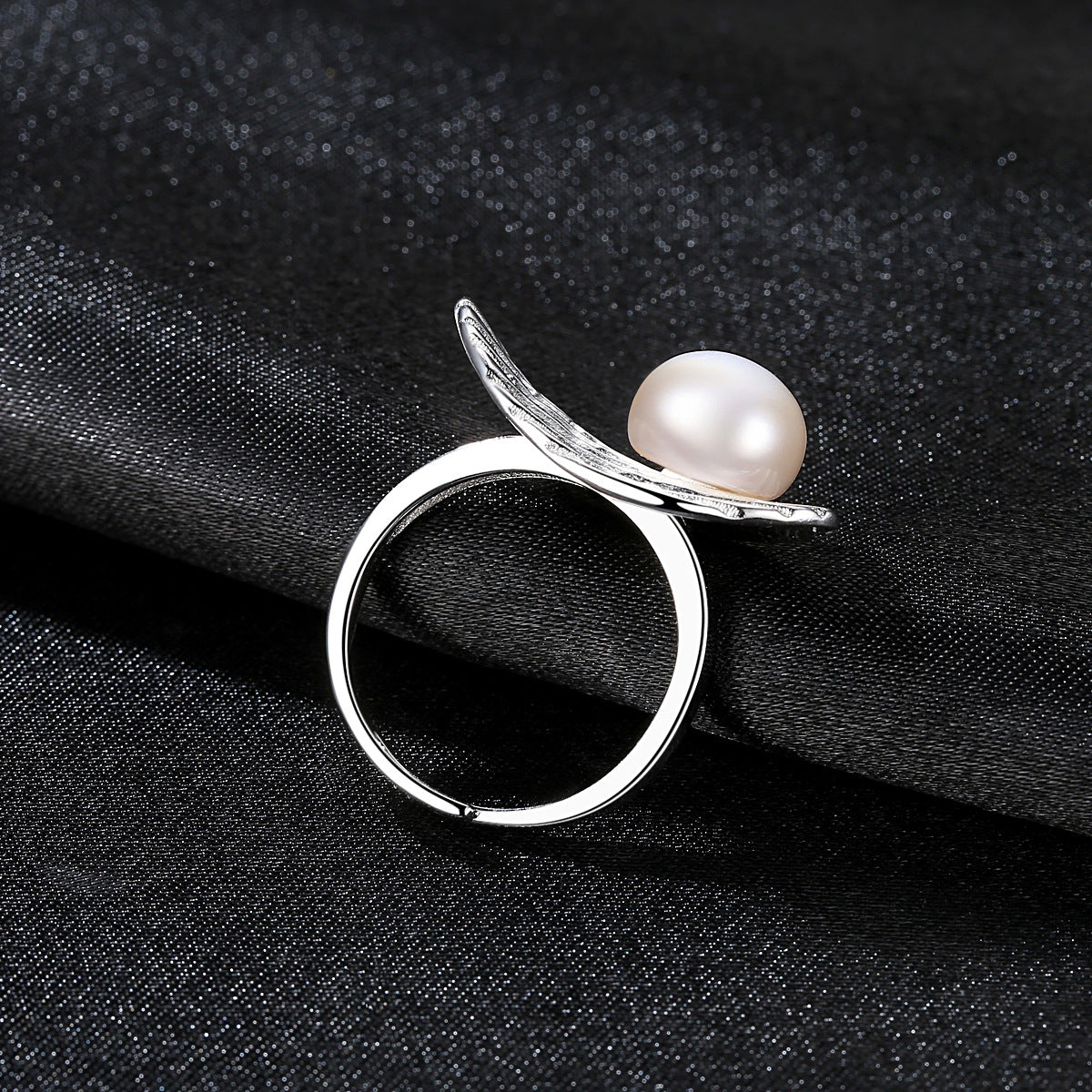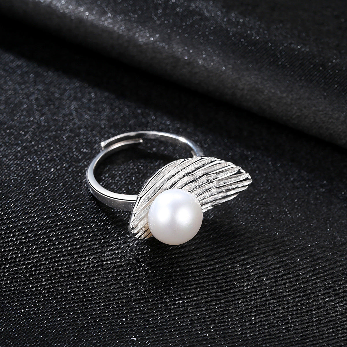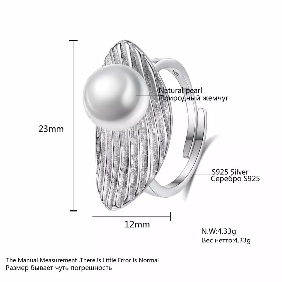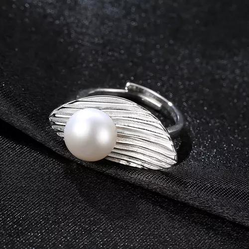 Aetolia 925 Sterling Silver Natural Freshwater Pearl Rings Feather Adjustable Open Ring FR0008