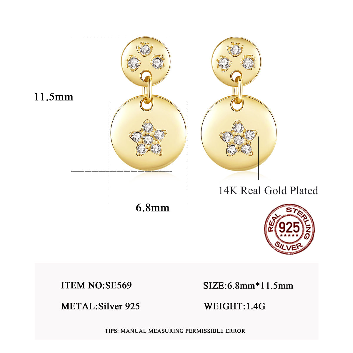 Aetolia 925 Sterling Silver 18K Gold Plated Pentagram Little Fish Circle Dangle Stud Earrings SE569