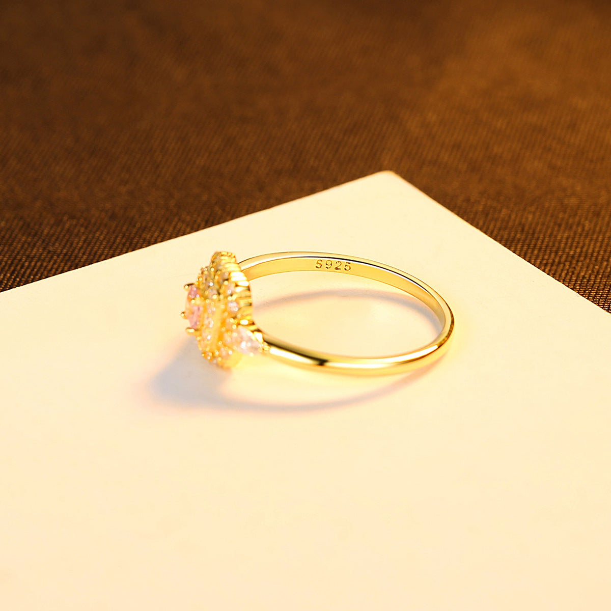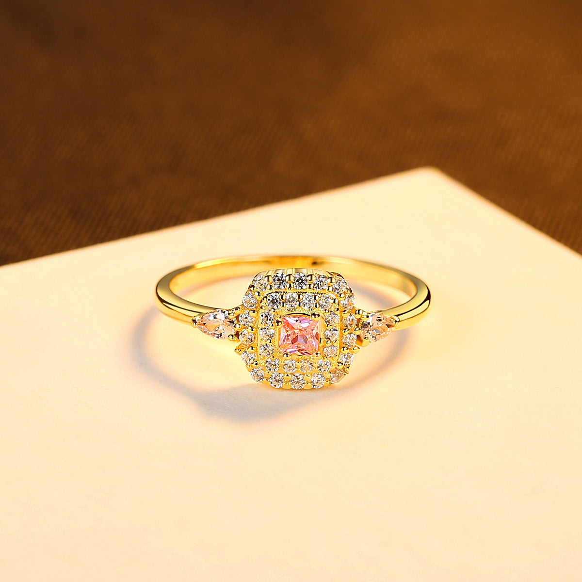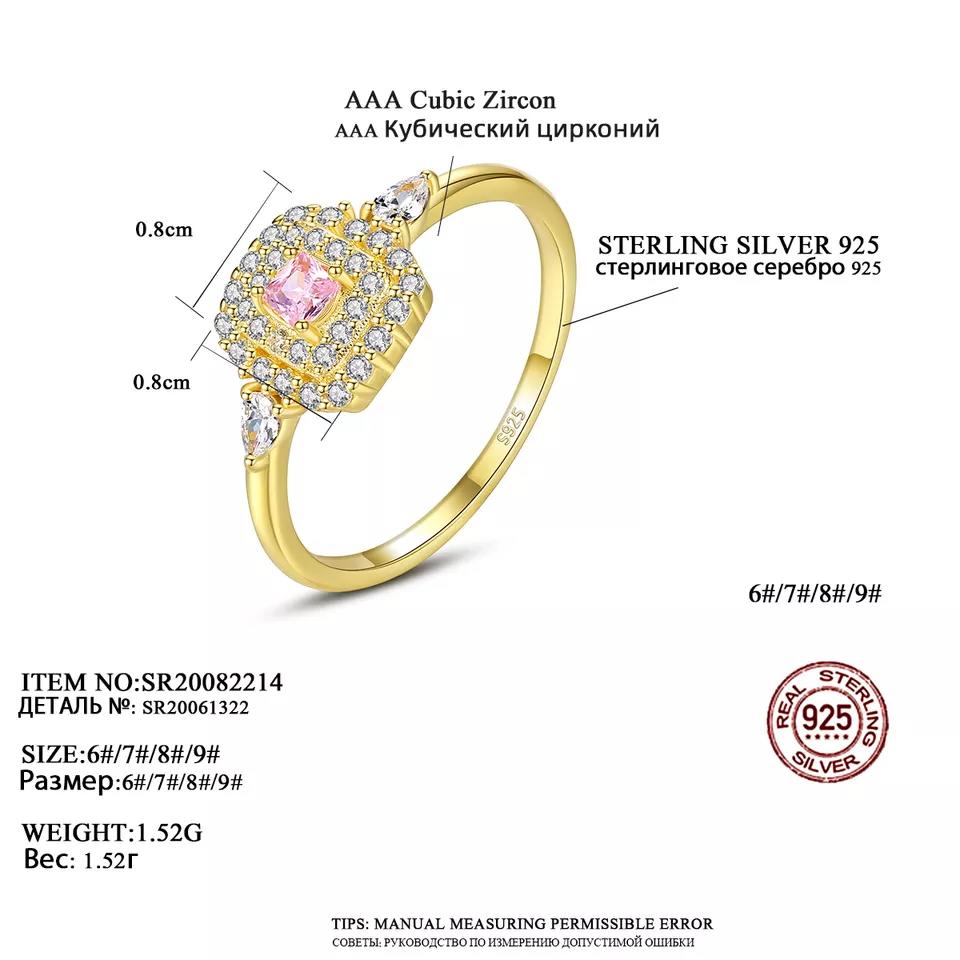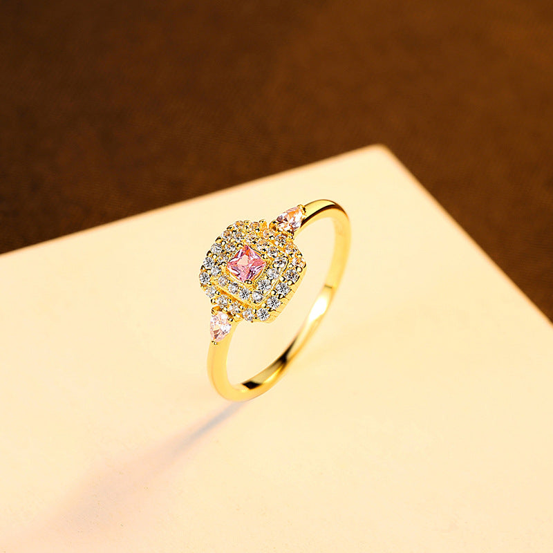 Aetolia 925 Sterling Silver 18K Gold Plated Pink CZ Diamond Halo Square Ring SR20082214