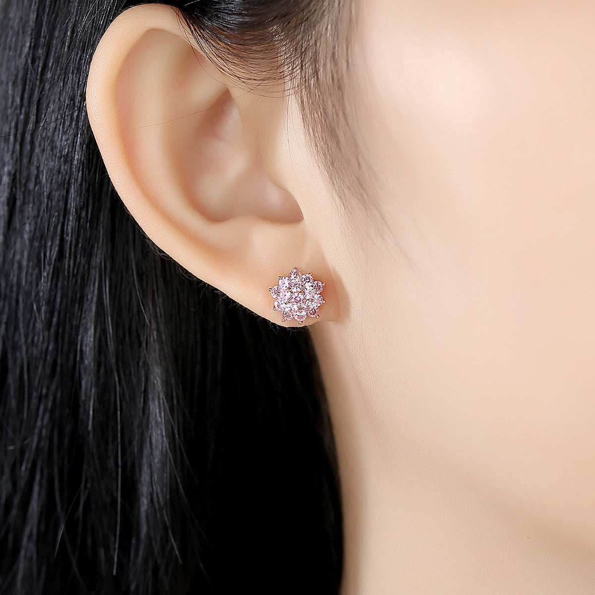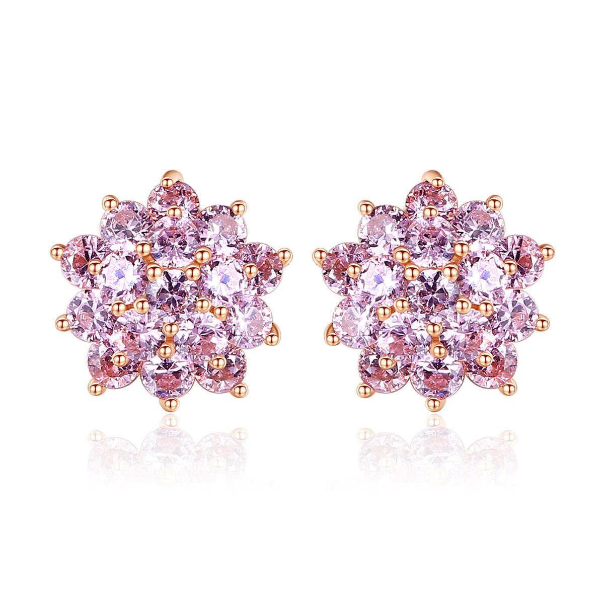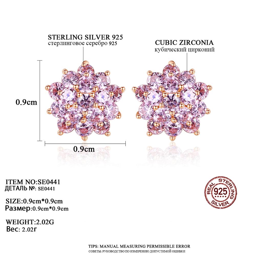 Aetolia 925 Sterling Silver 18K Gold Plated Pink Flower Cubic Zirconia Stud Earrings SE0441