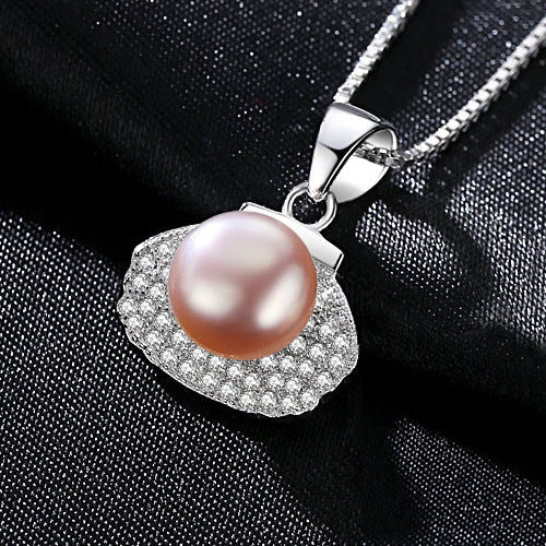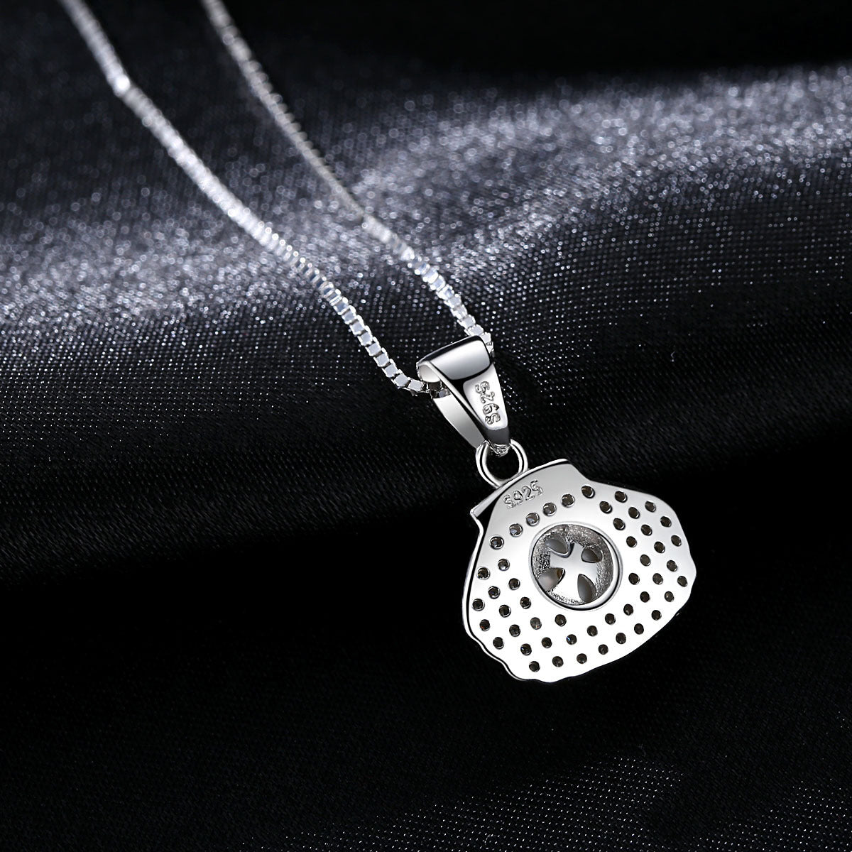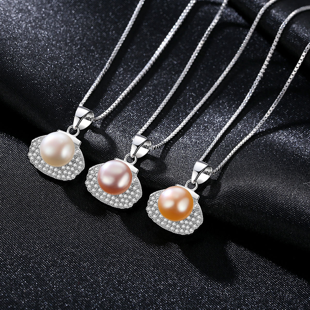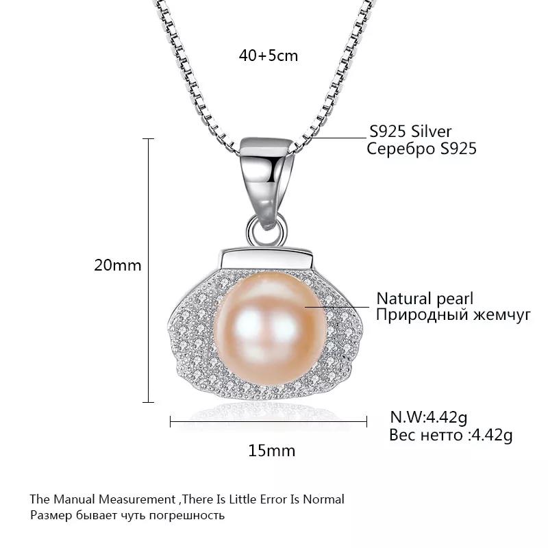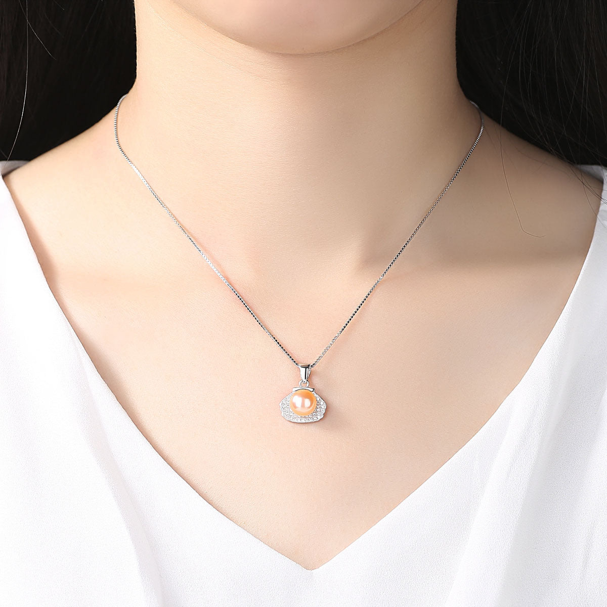 Aetolia 925 Sterling Silver Natural Freshwater Pearl Necklace Halo Shell Shaped Pendant Necklace FN0014