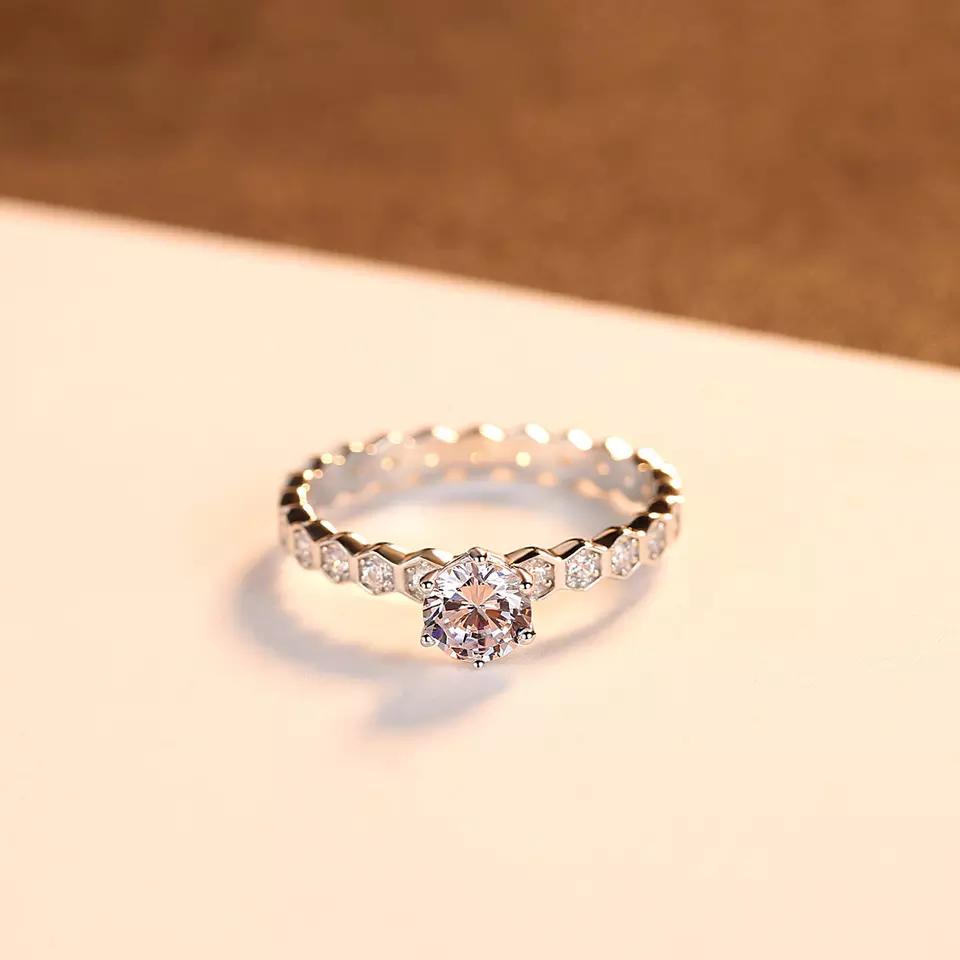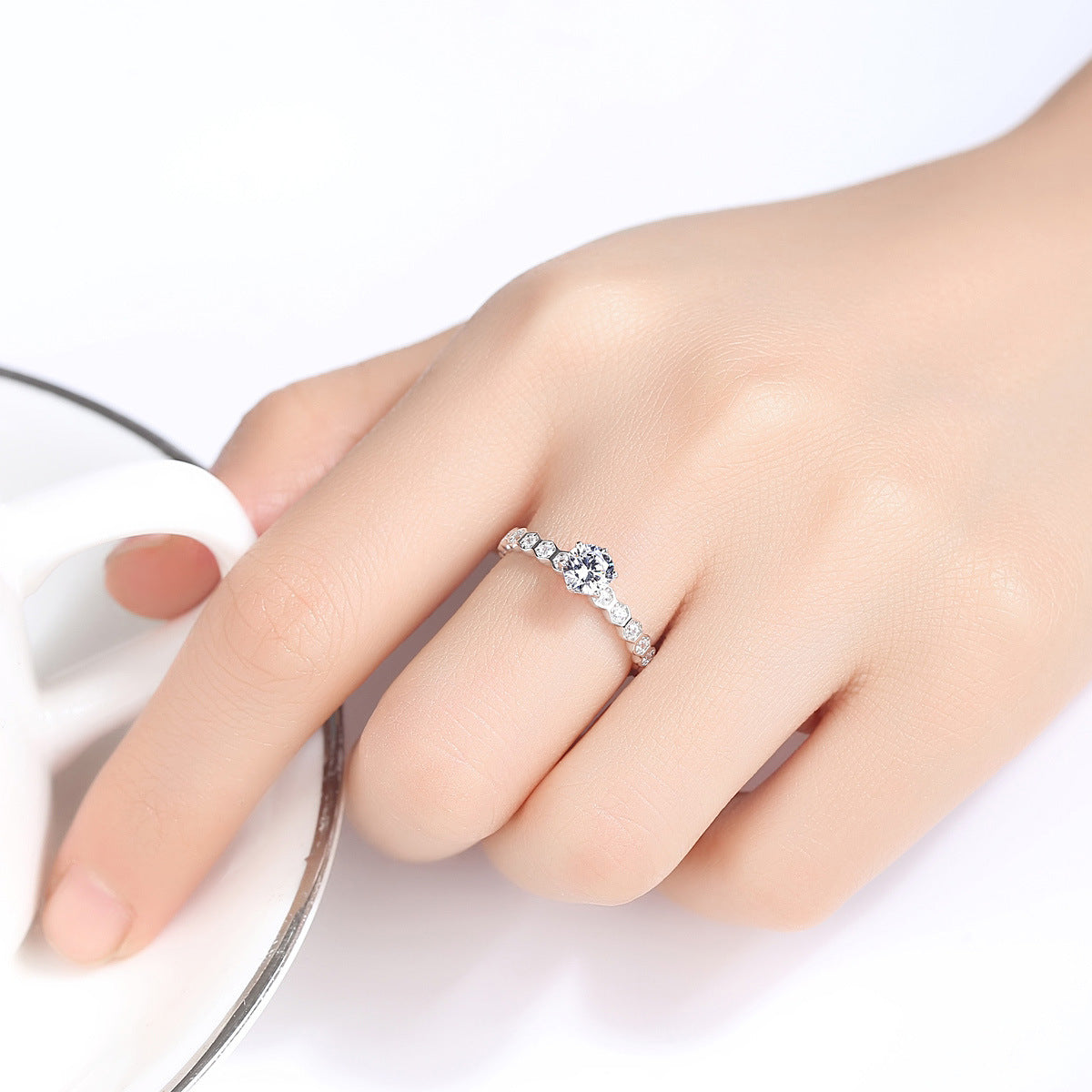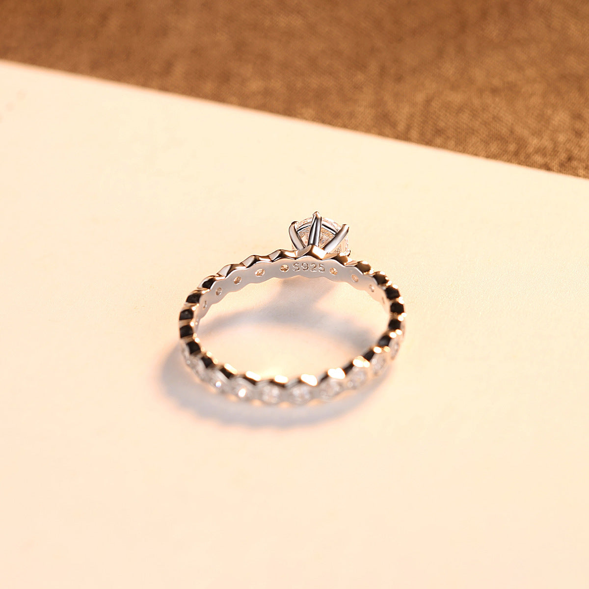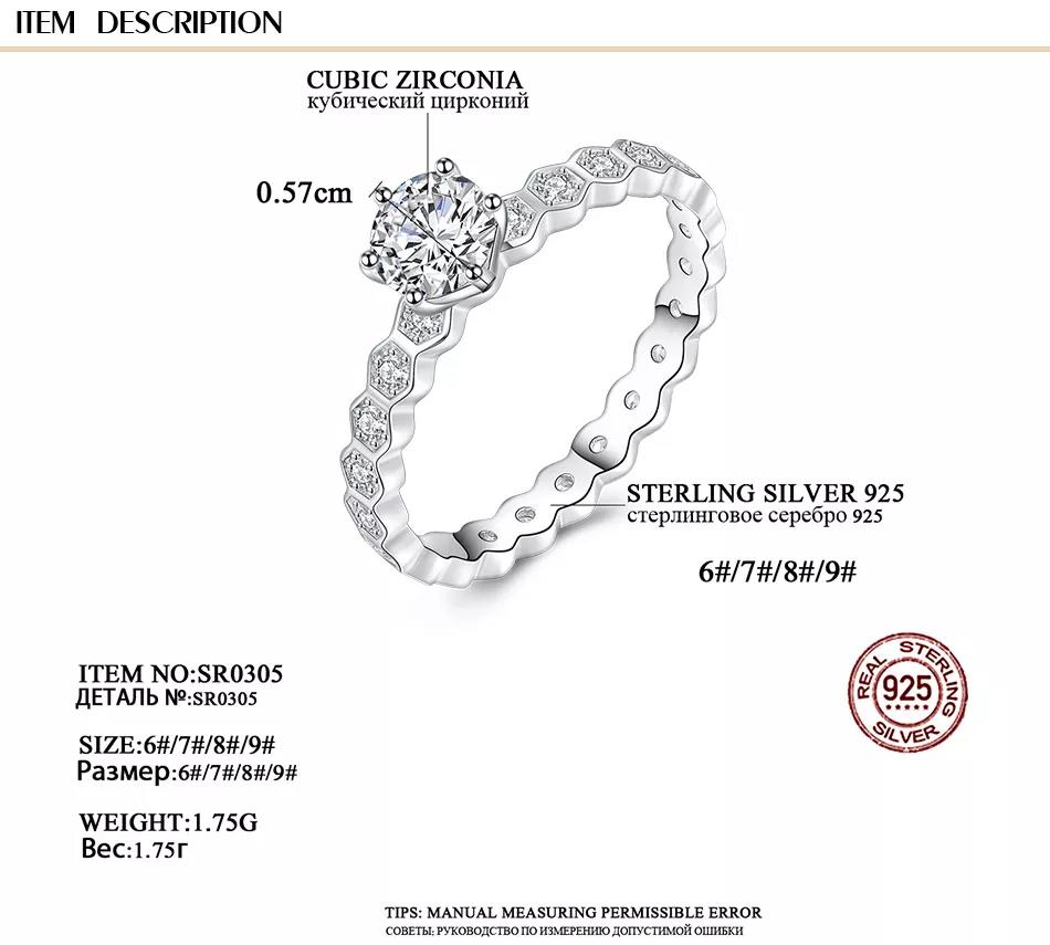 Aetolia 925 Sterling Silver 18K Gold Plated 6 Prong Round Single Row Engagement Wedding Ring SR0305