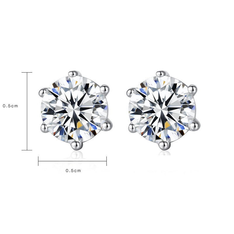 Aetolia 925 Sterling Silver 18K Gold Plated 6 Prongs Round Solitaire Stud Earrings SE0012