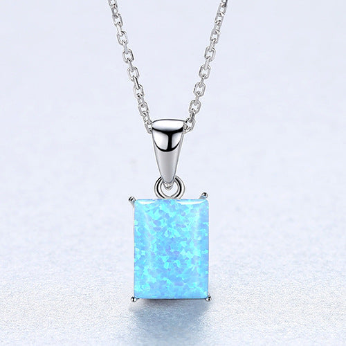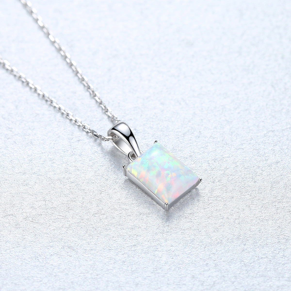 Aetolia 925 Sterling Silver Opal Necklace Rectangle Opal Pendant Necklace SN0142