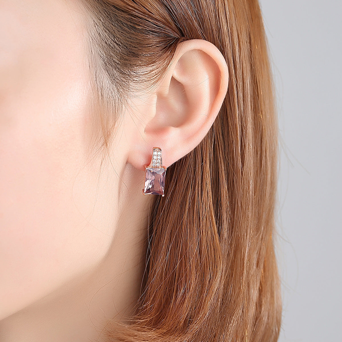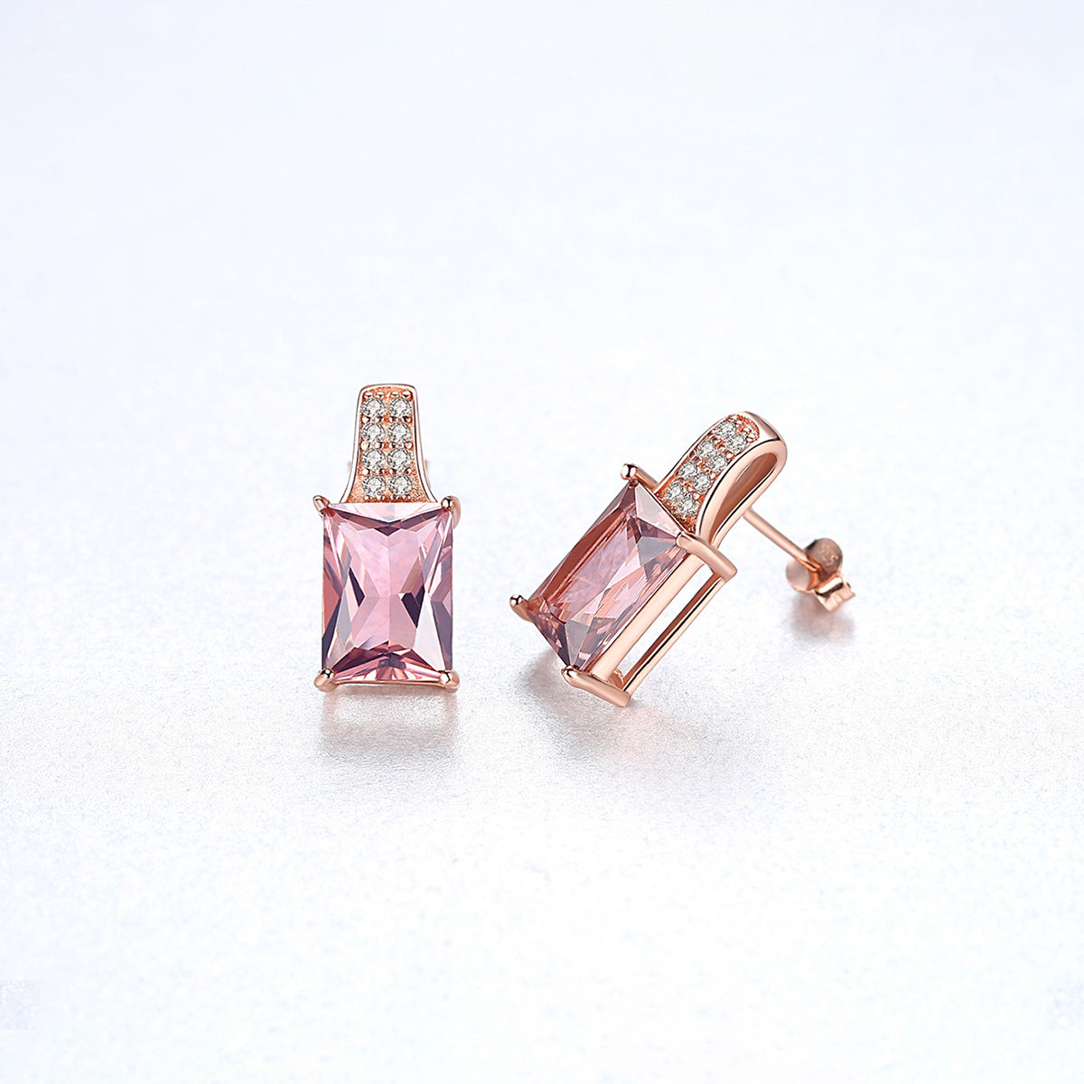 Aetolia 925 Sterling Silver 18K Gold Plated Rose Gold Rectangle Pink Gemstone Stud Earrings SE0119