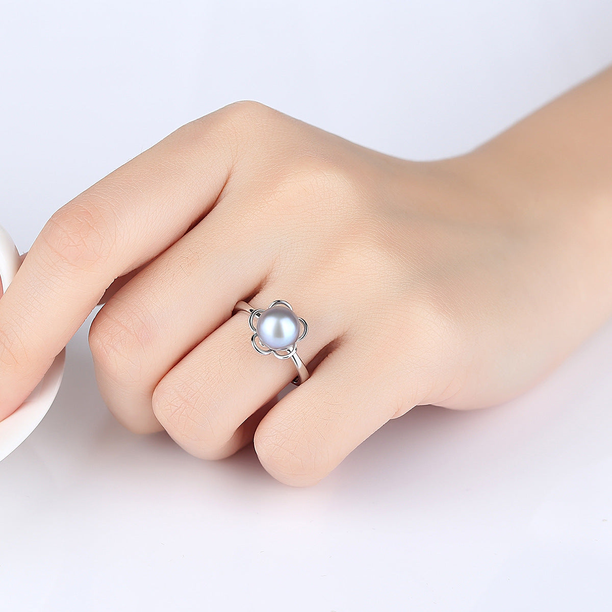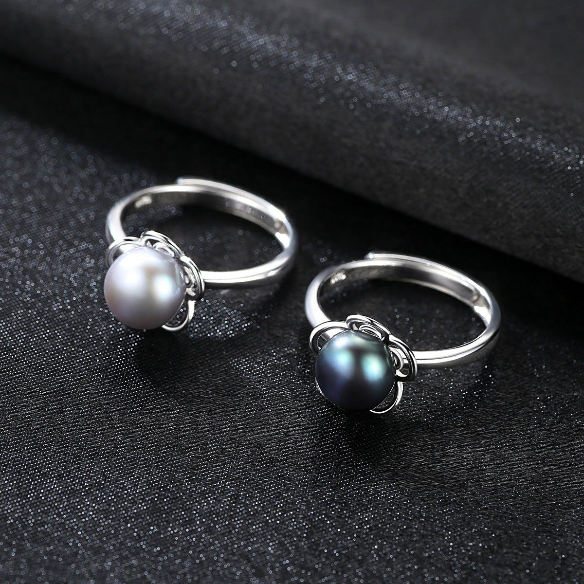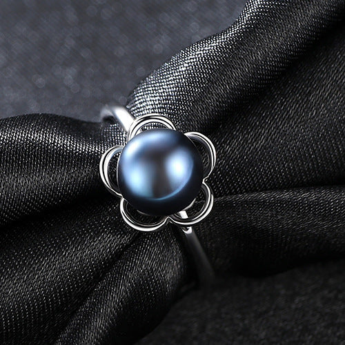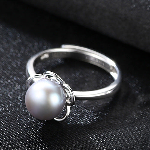 Aetolia 925 Sterling Silver Natural Freshwater Pearl Rings Hollow Out Flower Adjustable Open Ring FR0007