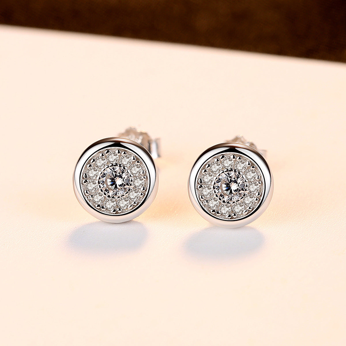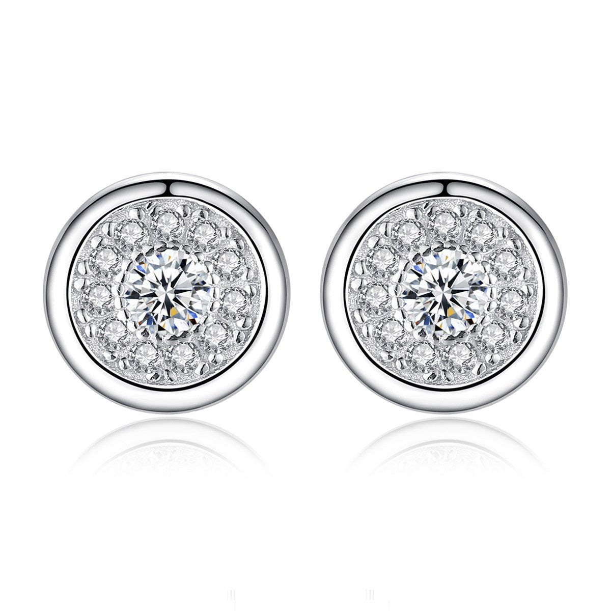 Aetolia 925 Sterling Silver 18K Gold Plated Round Halo Bezel Set Stud Earrings SE0066