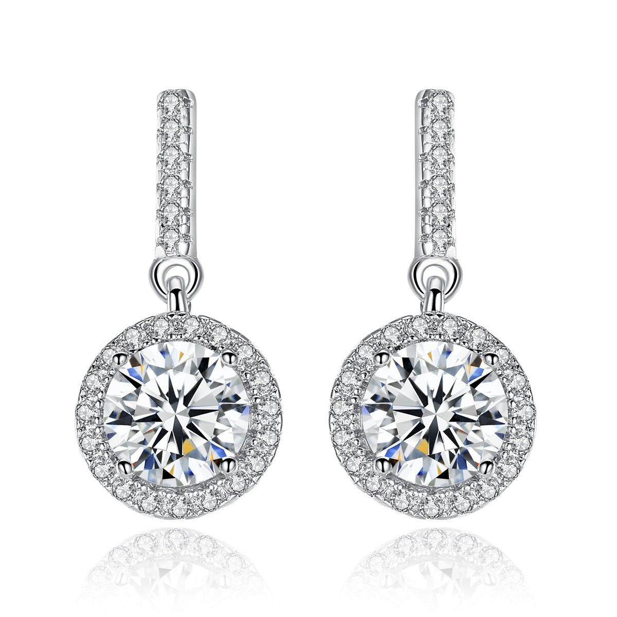 Aetolia 925 Sterling Silver 18K Gold Plated Round Halo Drop Dangle Stud Earrings SE0052