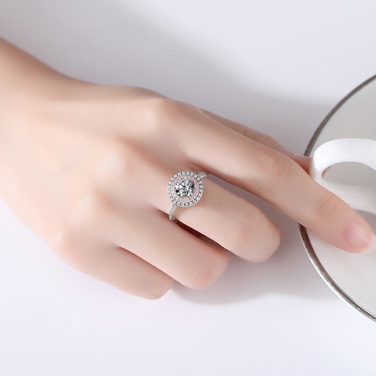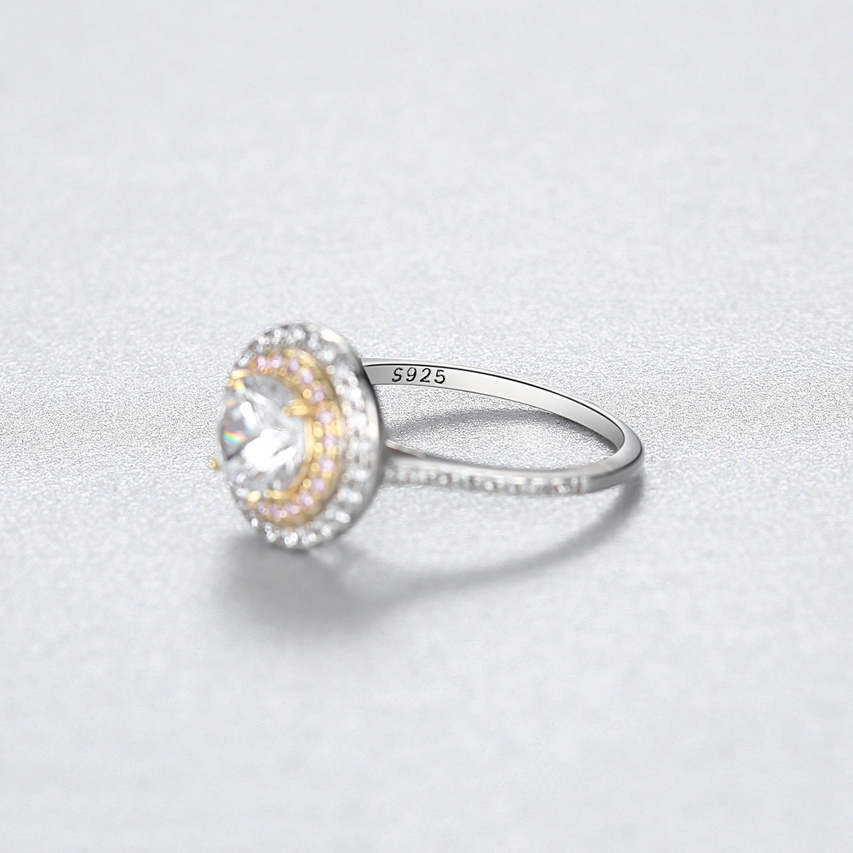 Aetolia 925 Sterling Silver 18K Gold Plated Round Pink Halo Engagement Wedding Ring SR20082220