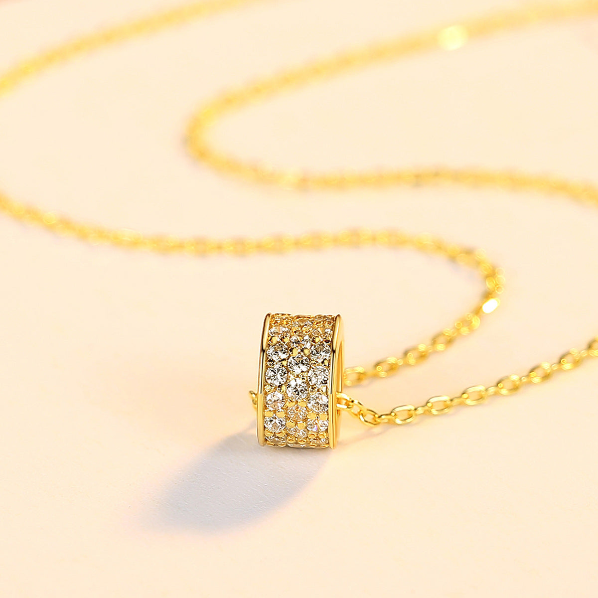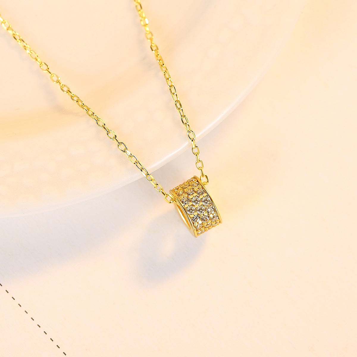 Aetolia 925 Sterling Silver 18K Gold Plated Round Ring Halo Cubic Zirconia Pendant Necklace FN-0274
