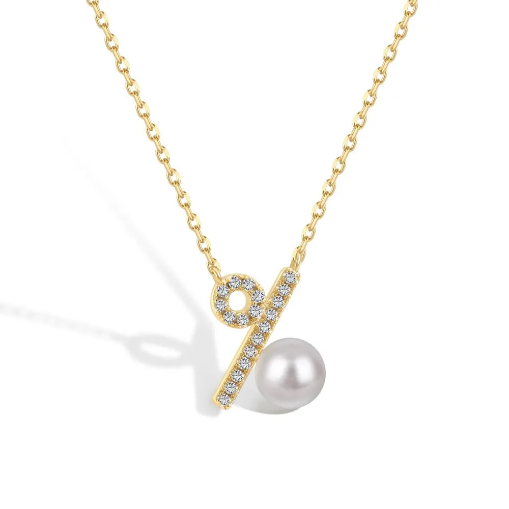 Aetolia S925 Sterling Silver necklace Link Chain Fine Jewelry 1% Percent Symbol Diamond Zirconia Pearl Pendant Necklaces for Women
