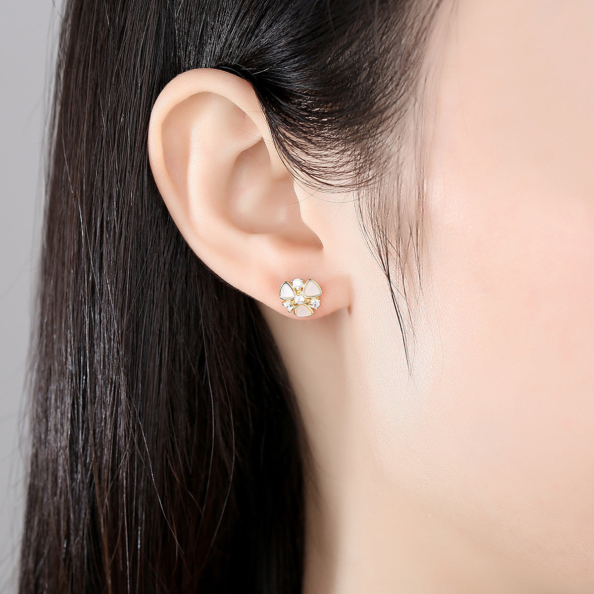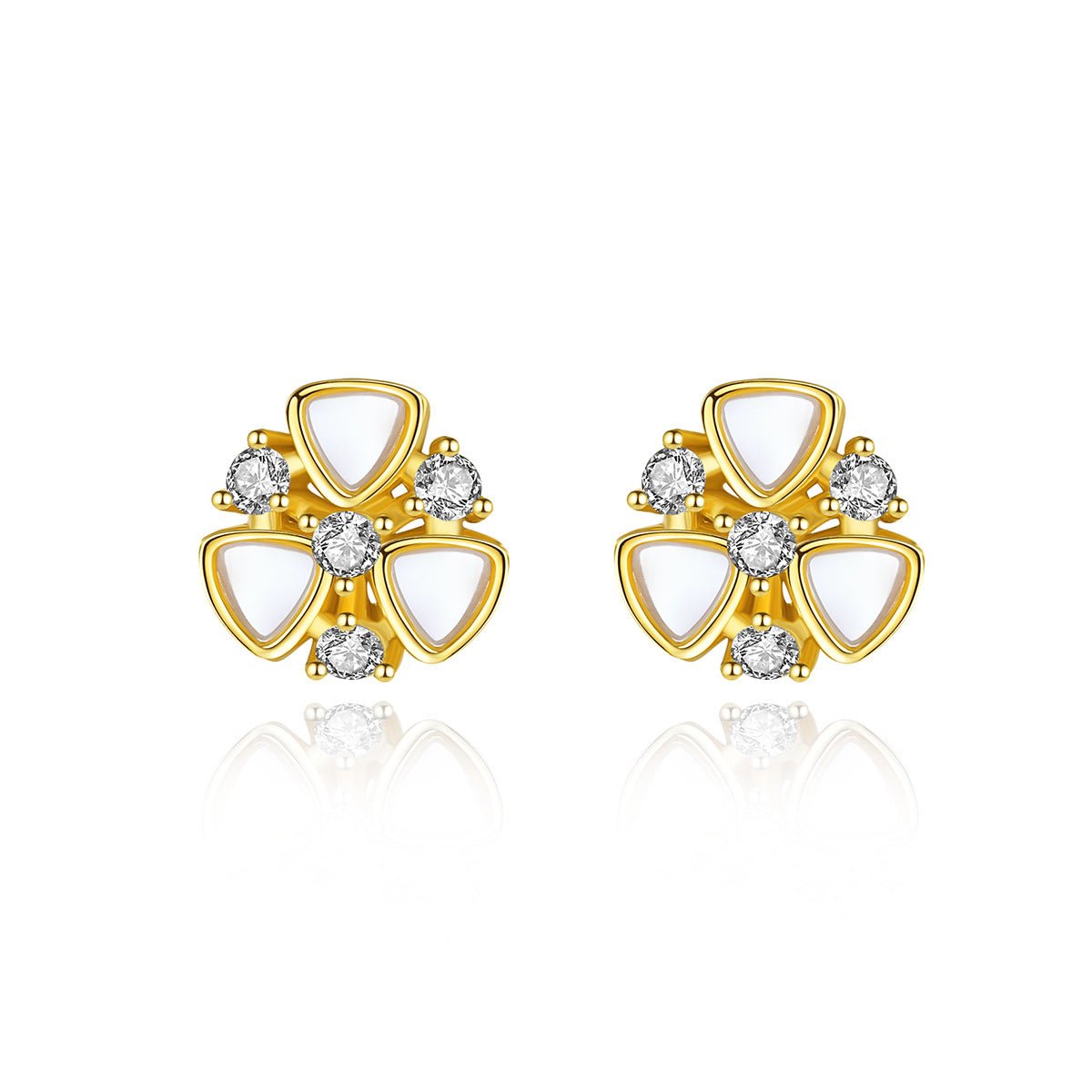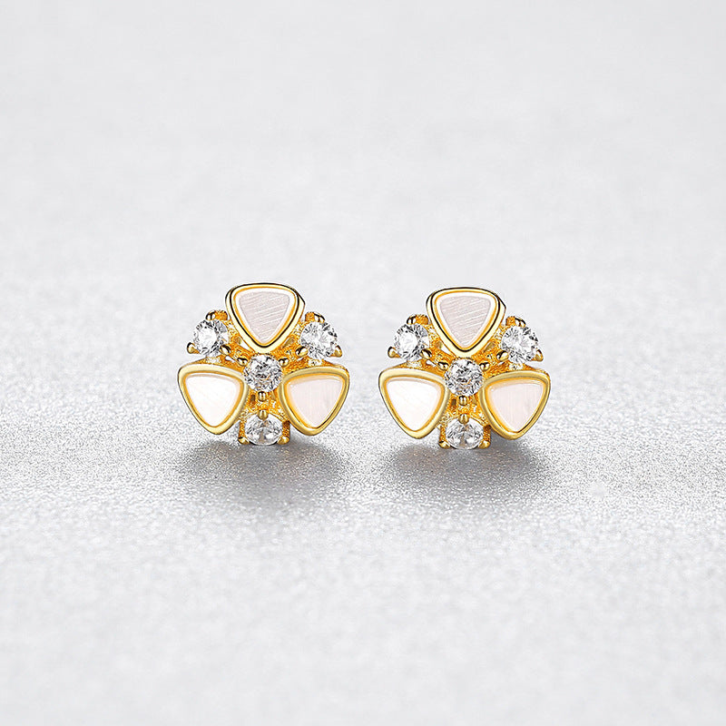 Aetolia 925 Sterling Silver 18K Gold Plated Sea Shell Tiny Floral Shape Stud Earrings FE-0261
