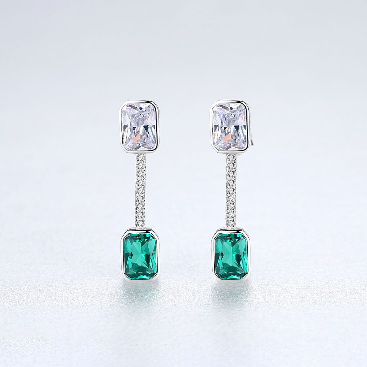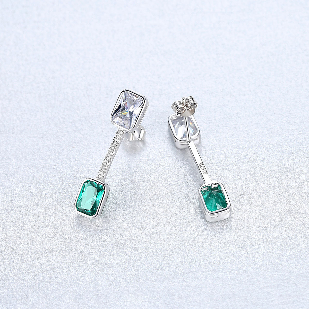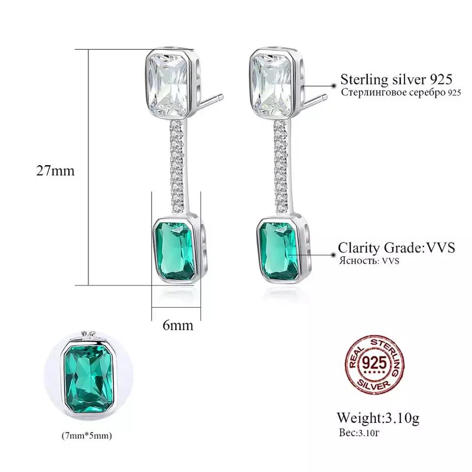 Aetolia 925 Sterling Silver 18K Gold Plated Emerald Green Gemstone Simulated Cubic Zirconia Long Stud Earrings SE0122