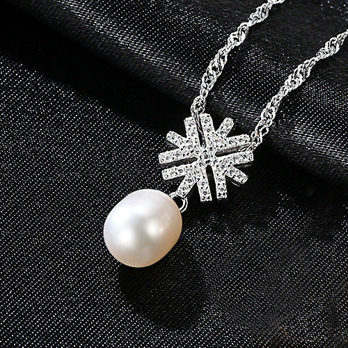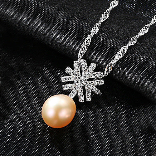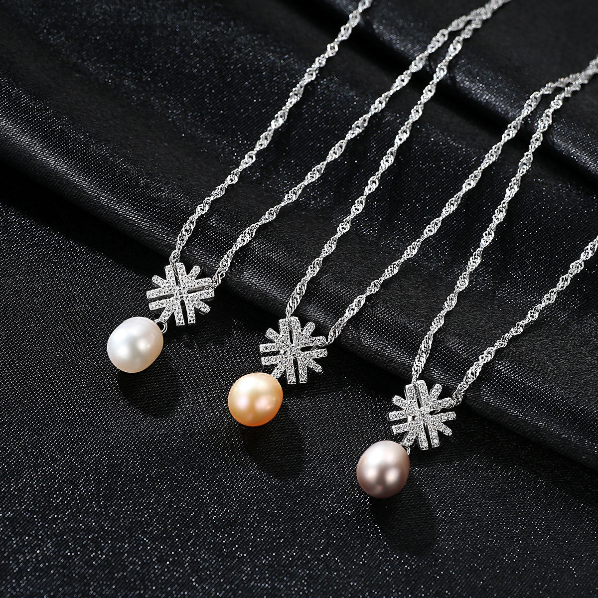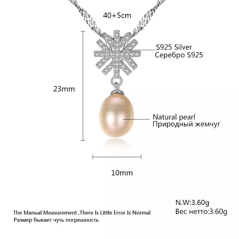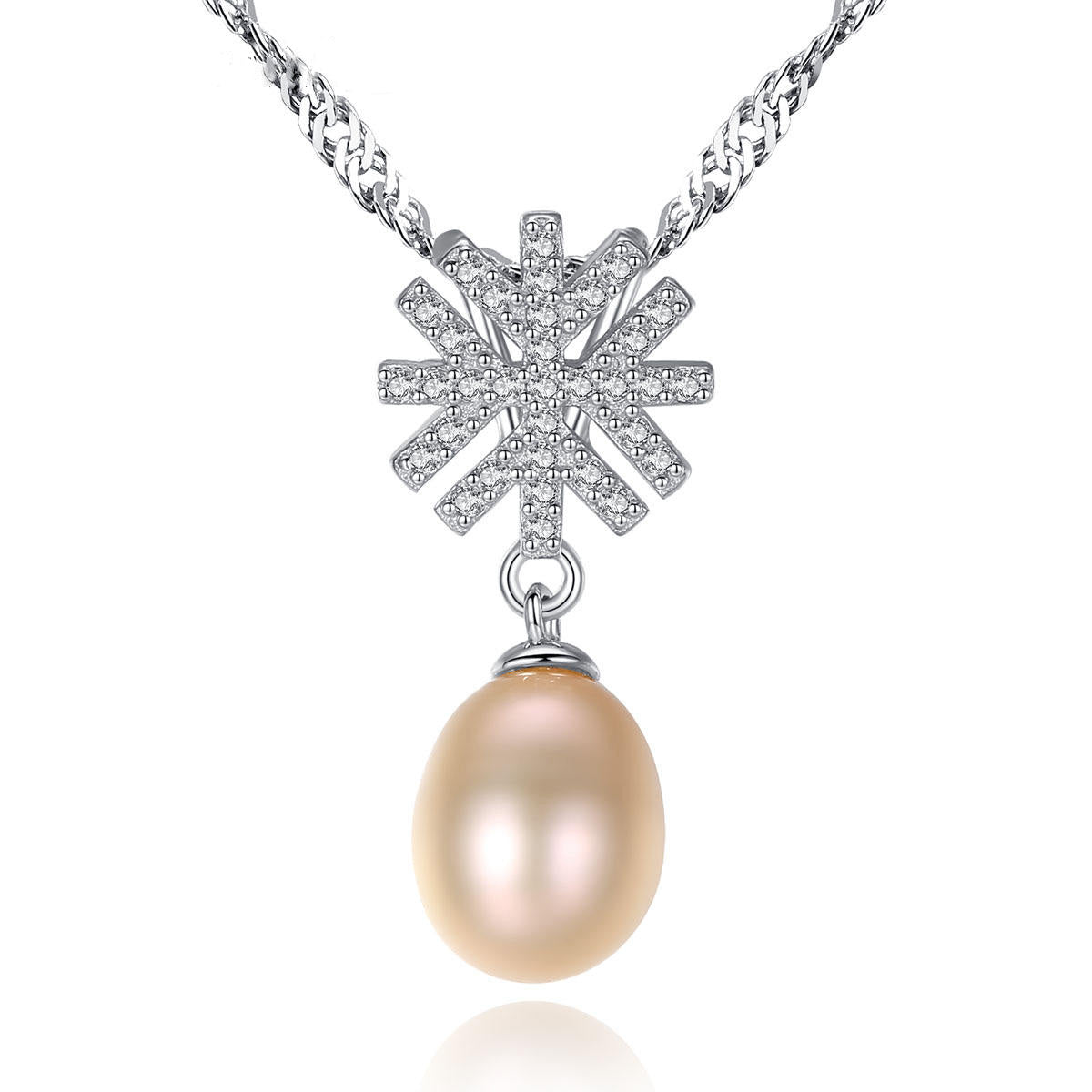 Aetolia 925 Sterling Silver Natural Freshwater Pearl Necklace Snowflake Shaped Pendant Necklace FN0038